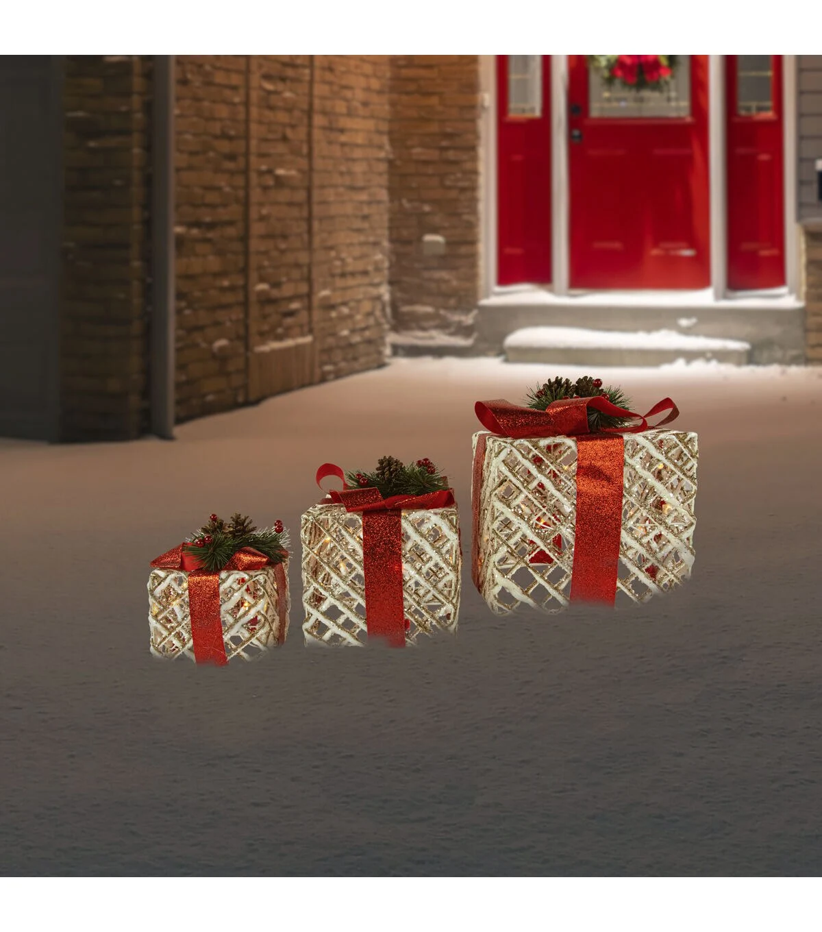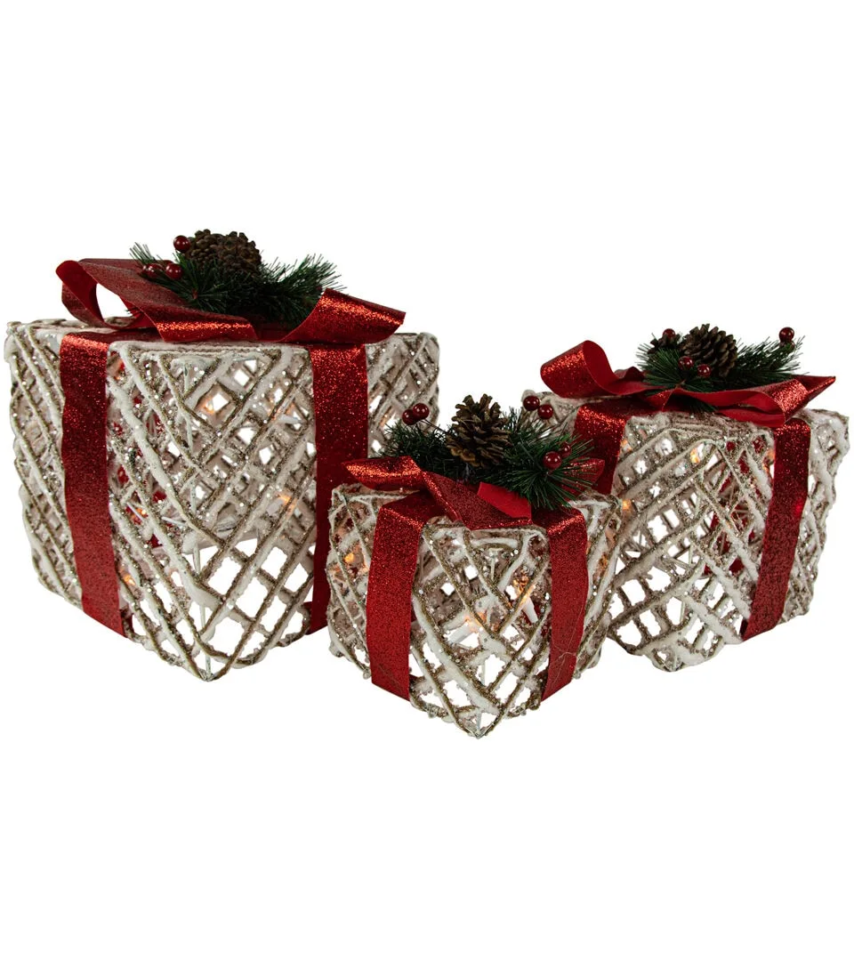 Northlight 3ct Lighted White Rope Outdoor Christmas Gift Boxes