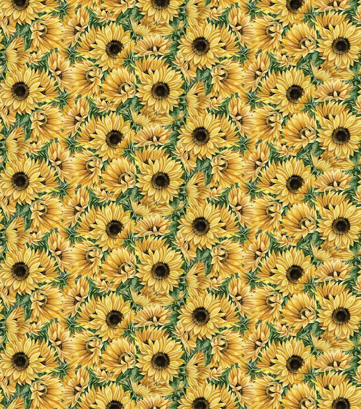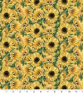 Yellow Sunflowers & Ferns Premium Cotton Fabric