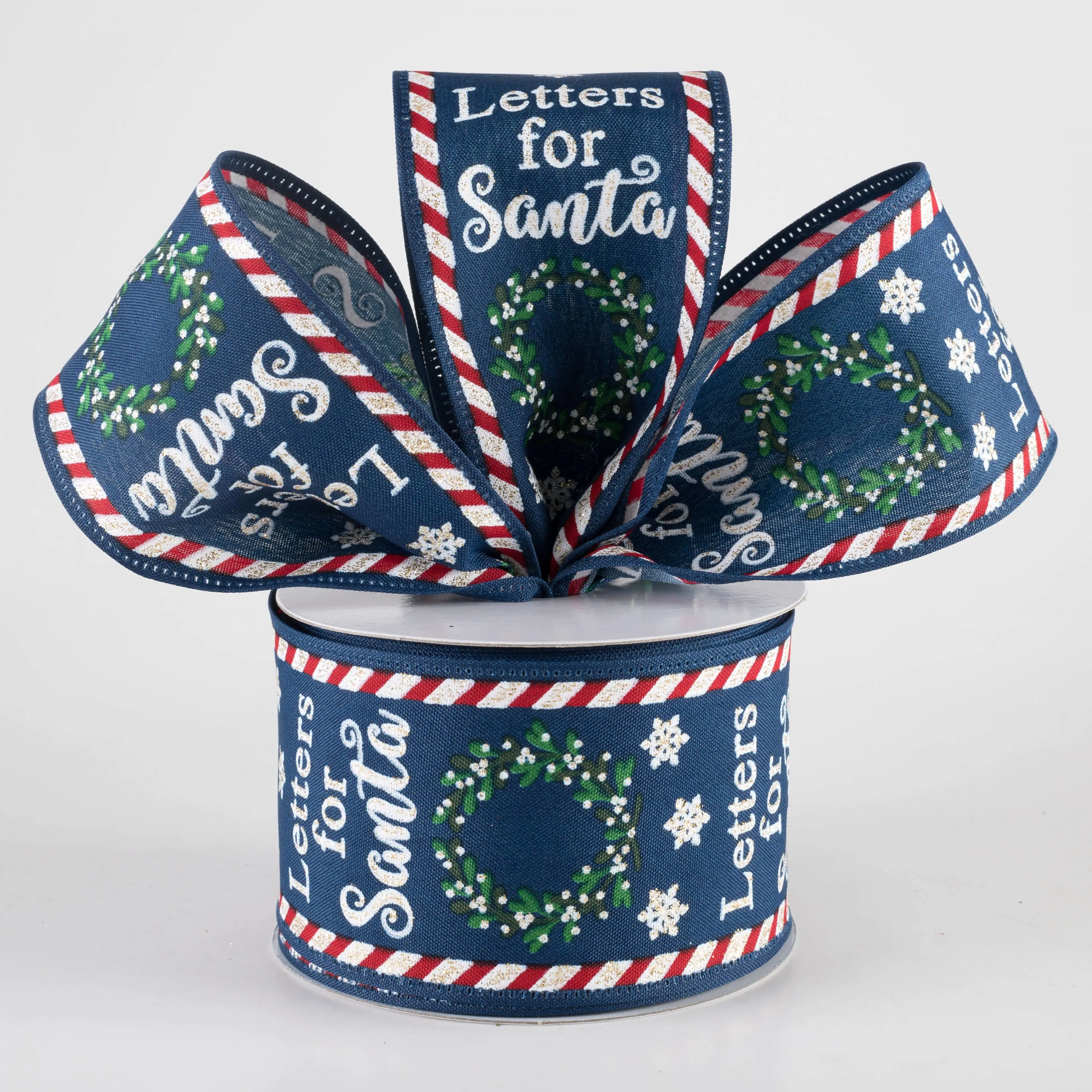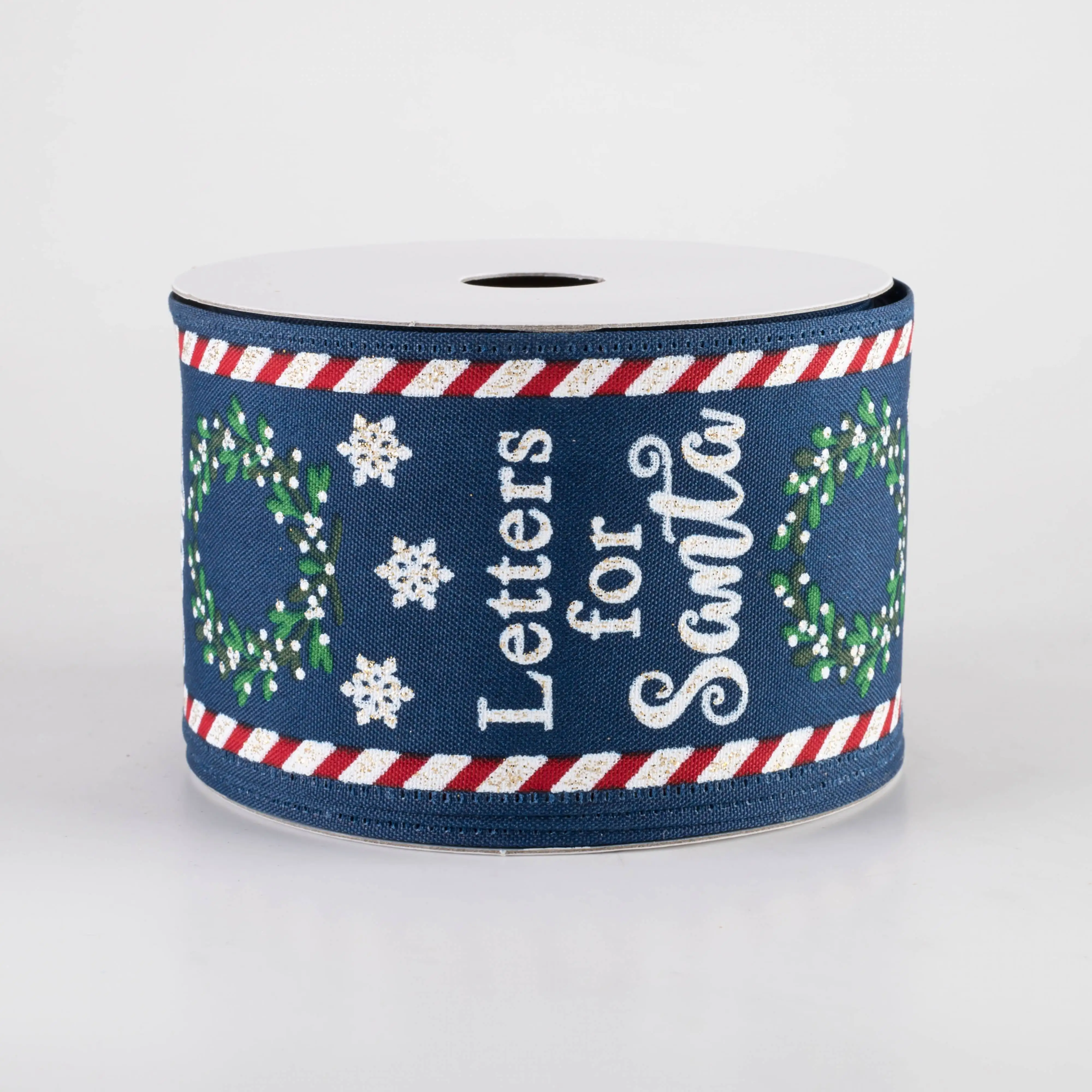 2.5" Linen Letters For Santa Ribbon: Navy Blue (10 Yards)
