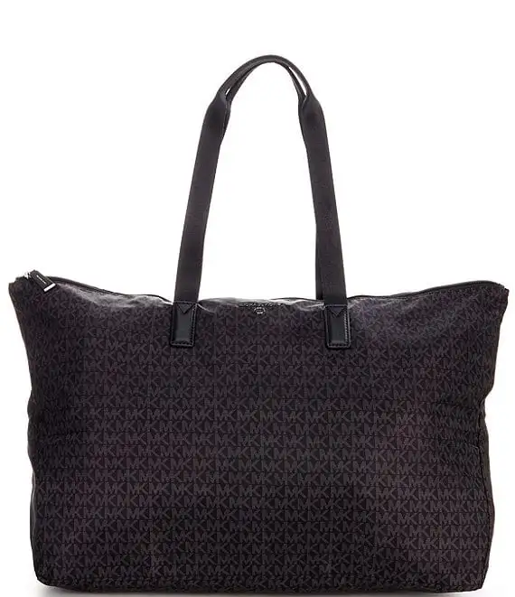 Jet Set Black Signature Logo Travel Large Packable Tote Bag