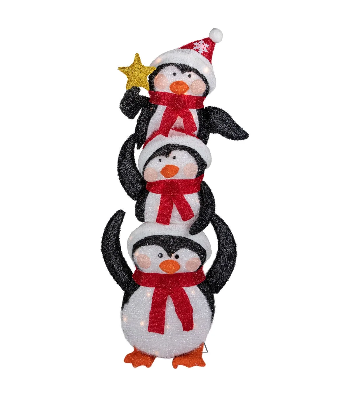 Northlight 41" Christmas Lighted Stacked Penguin Family