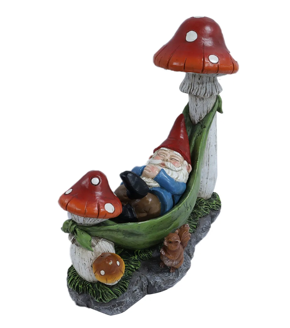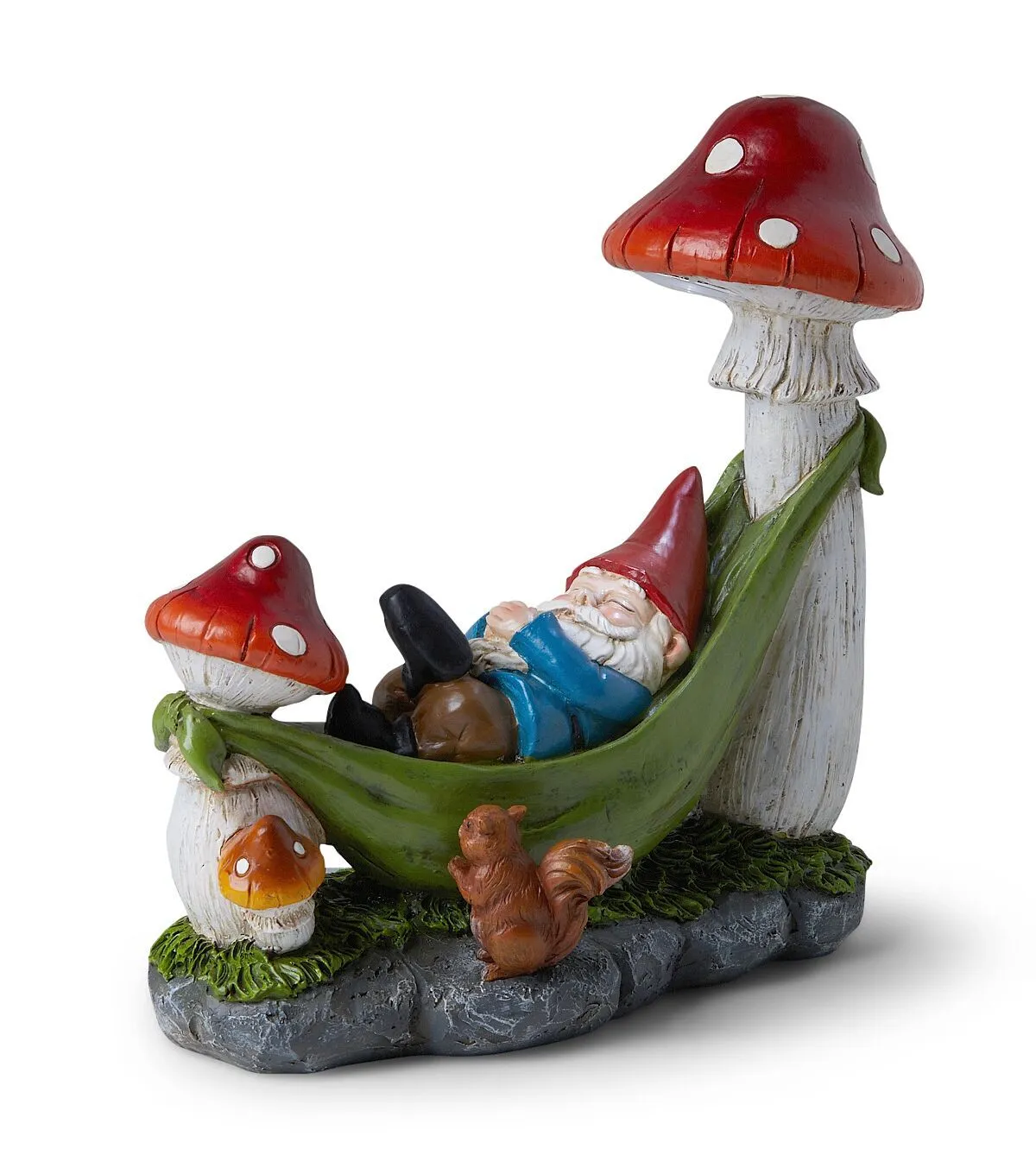 10.5" Gnome in Hammock Outdoor Solar Garden Statue by Place & Time