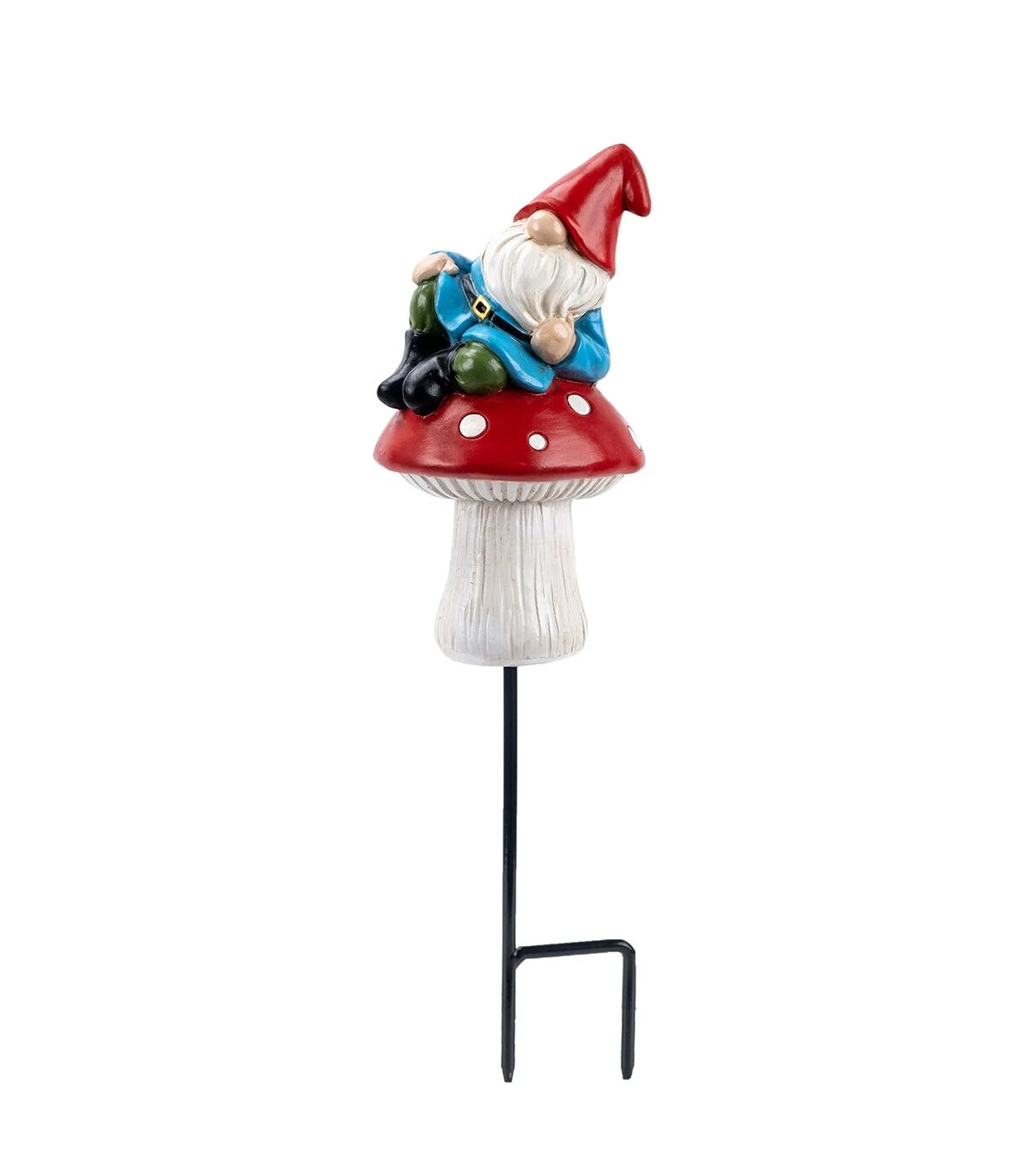 10" Spring Gnome on Red Mushroom Yard Stake by Place & Time