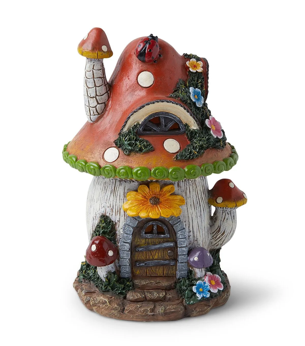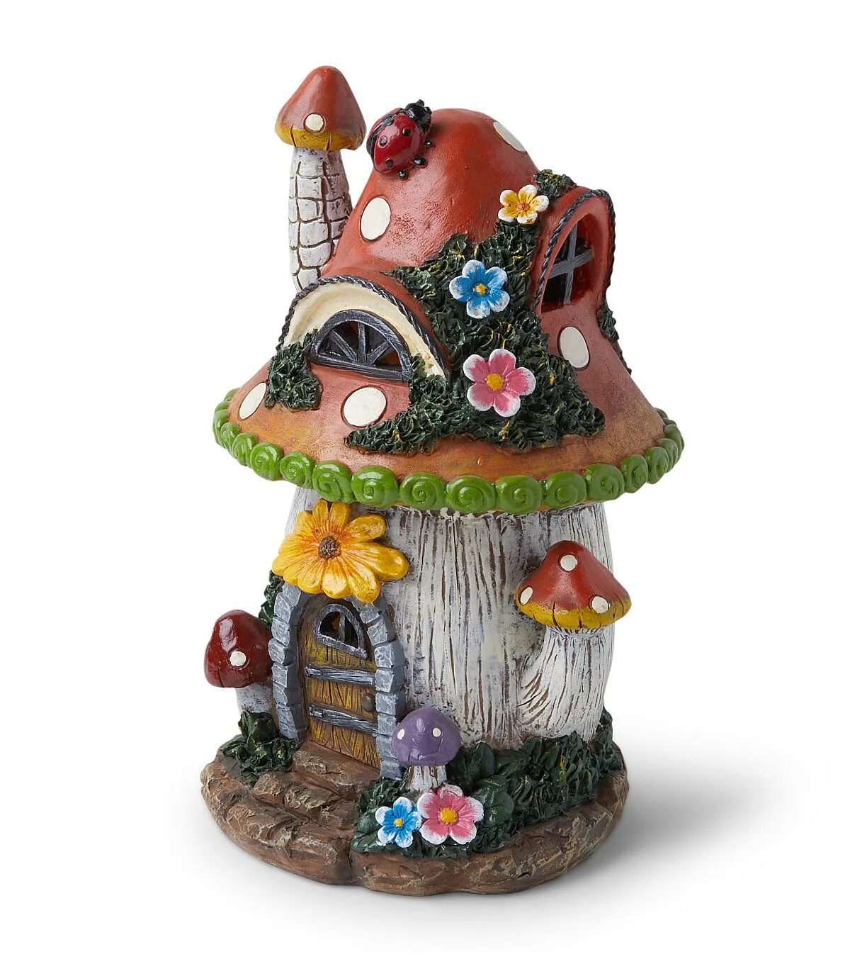 12" Spring Mushroom House Outdoor Solar Garden Statue by Place & Time