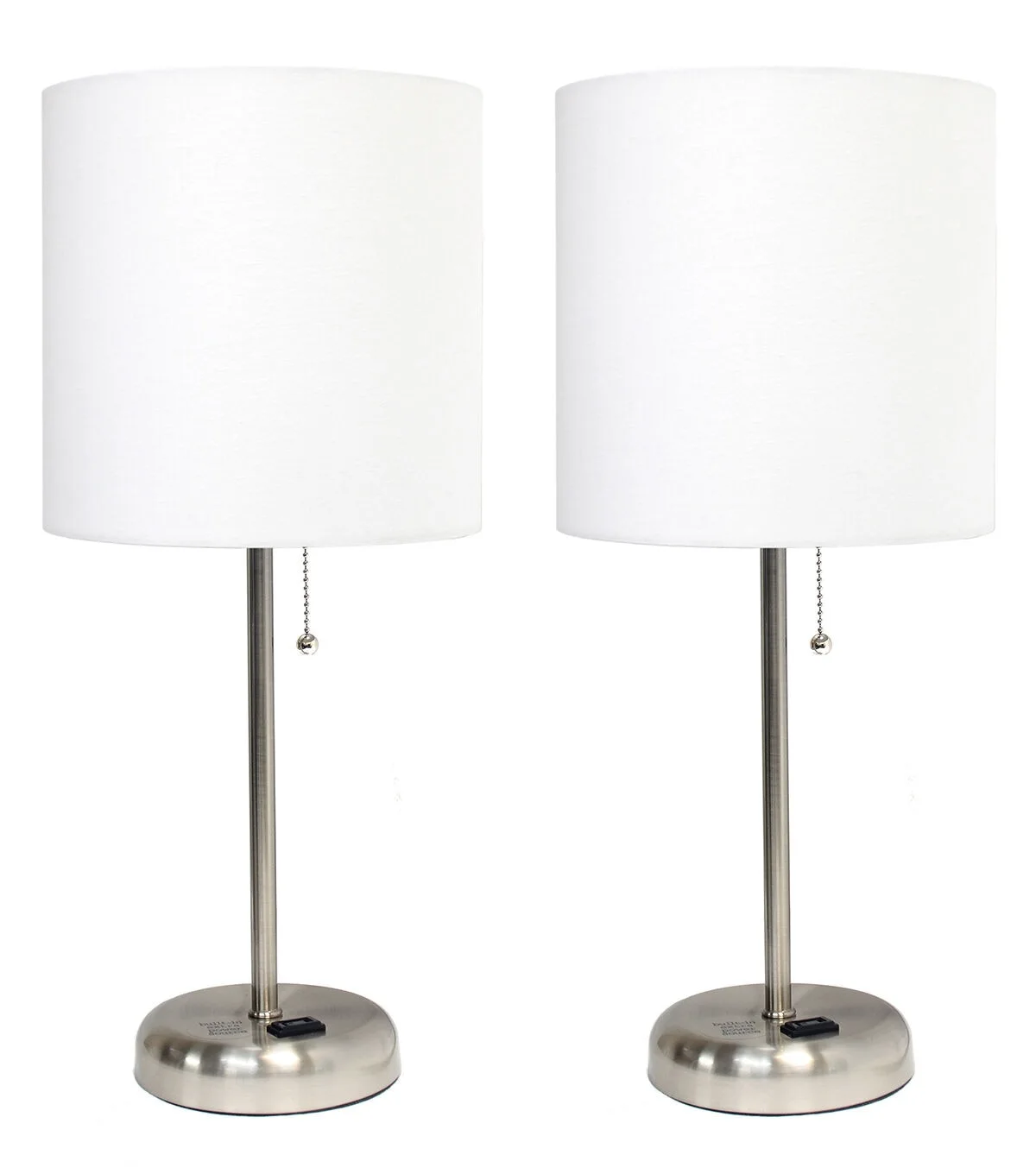 All The Rages Stick Lamp with Charging Outlet and Fabric Shade 2 Pack