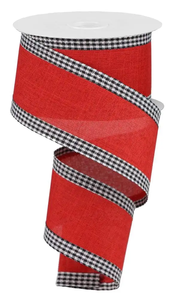 Wired Ribbon Royal Burlap Gingham Edge for Wreaths, Floral Arrangements, Gift Wrapping, Crafting (Red, Black, White, 2.5" x 10yd)