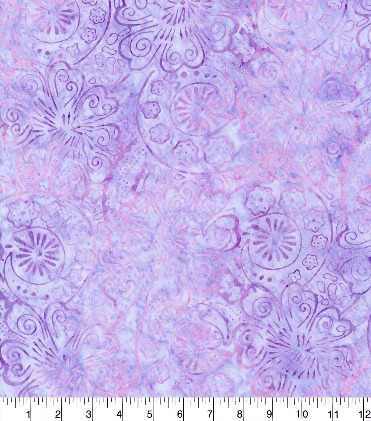 Hi Fashion Lilac And Pink Swirls On Light Purple Batik Cotton Fabric