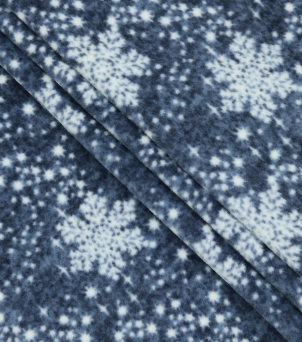 Blue Starry Night Snowflake Luxe Fleece Fabric