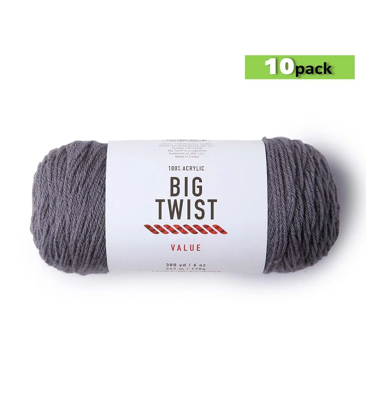 10pk Solid Titanium Medium Weight Acrylic 380yd Value Yarn by Big Twist