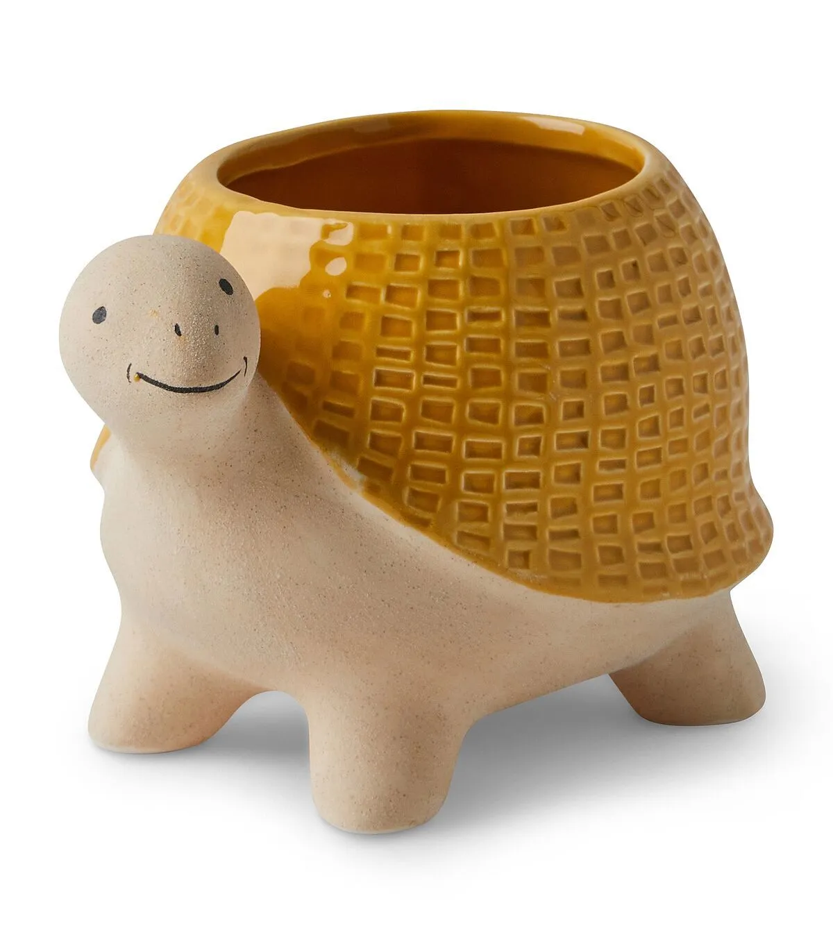 7" Spring Mustard Yellow Ceramic Turtle Planter by Place & Time