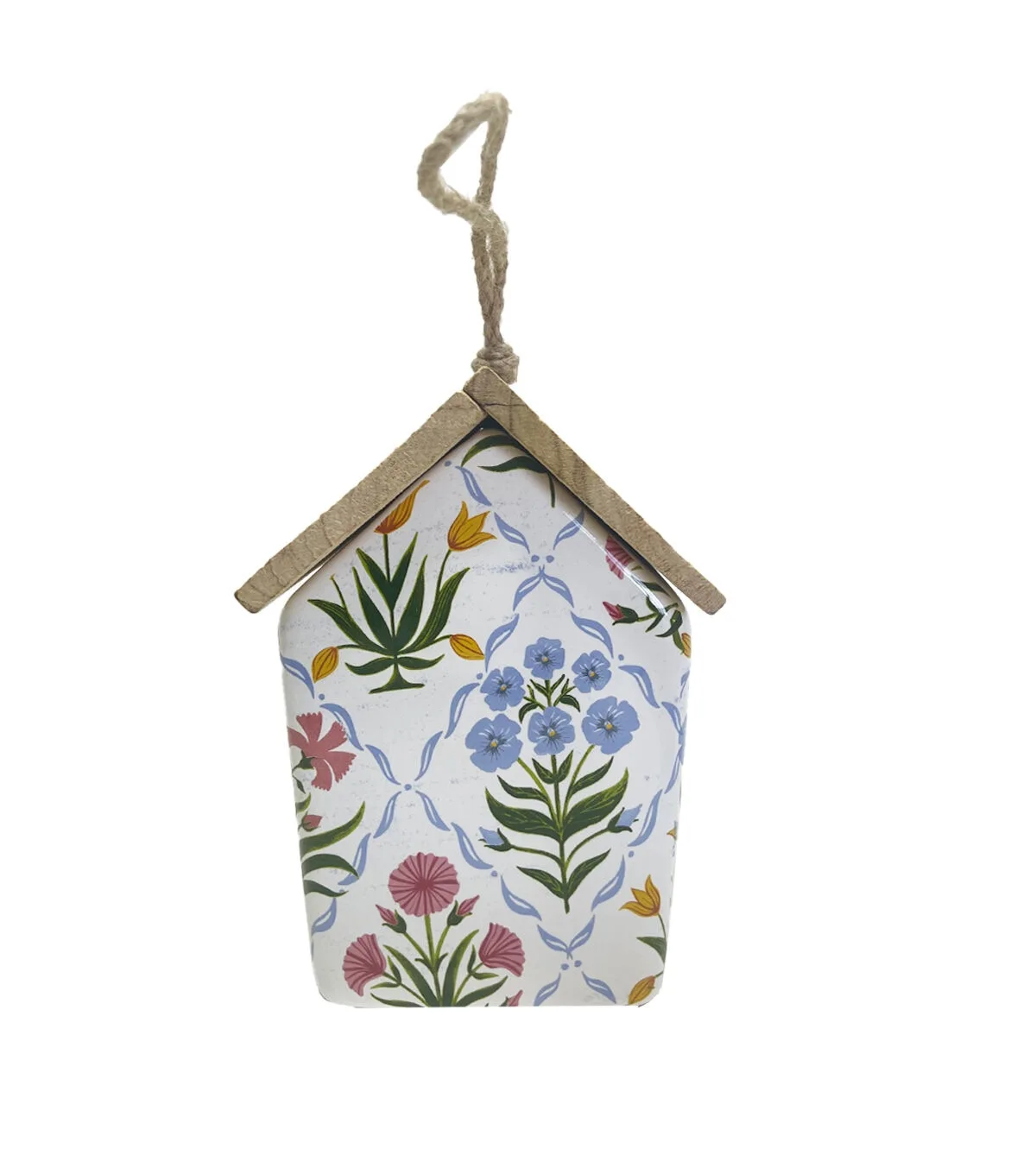 8" Spring White & Blue Ceramic Birdhouse by Place & Time