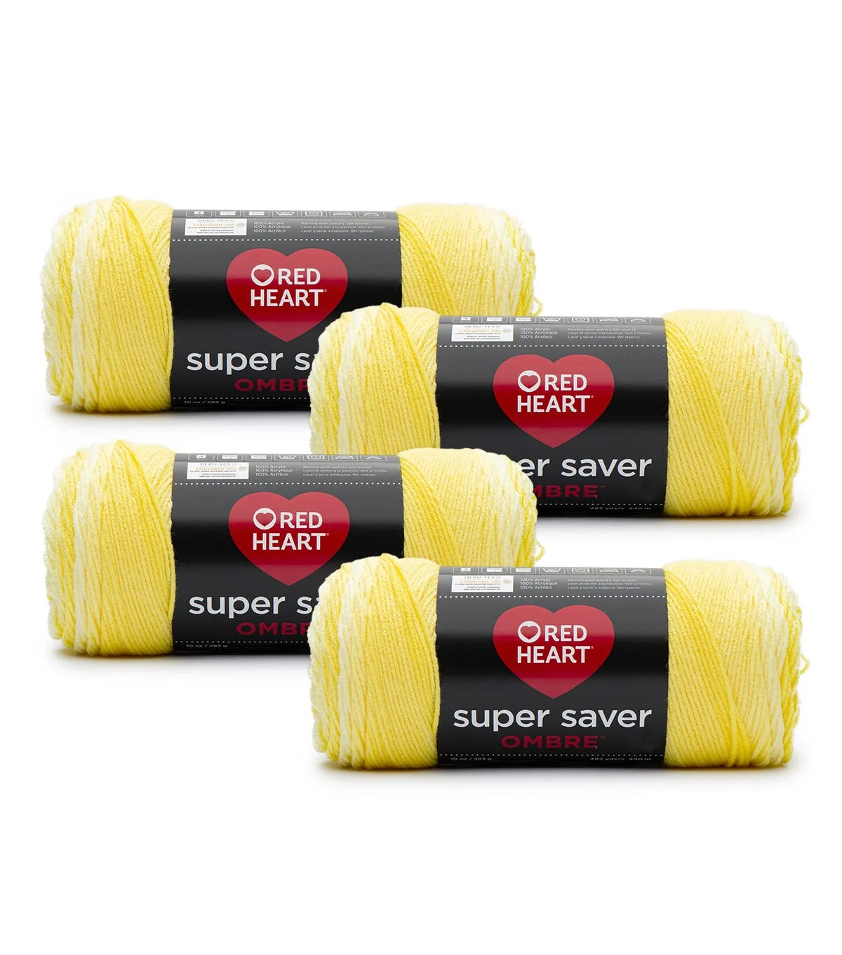 Red Heart Super Saver Ombre 482yds Worsted Acrylic Yarn 4 Bundle