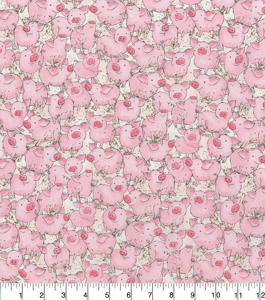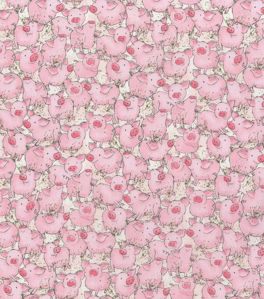 Hi Fashion Watercolor Packed Pigs Novelty Cotton Fabric