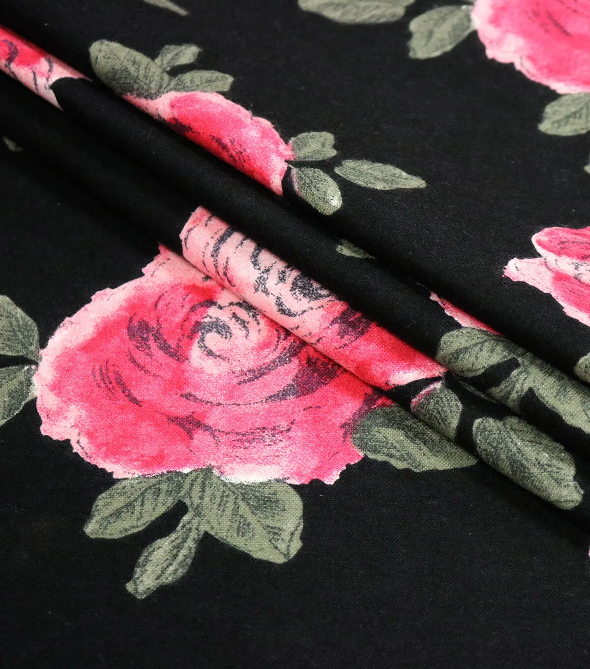 Goldfinch Thistle on Black Premium Cotton Fabric