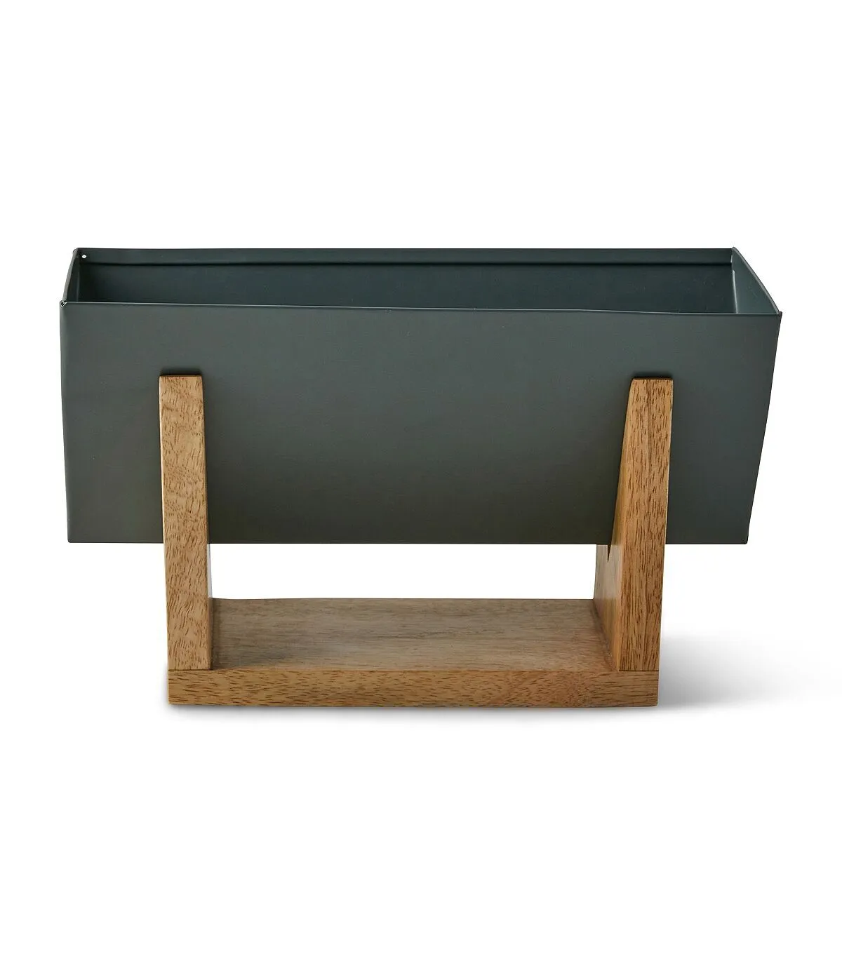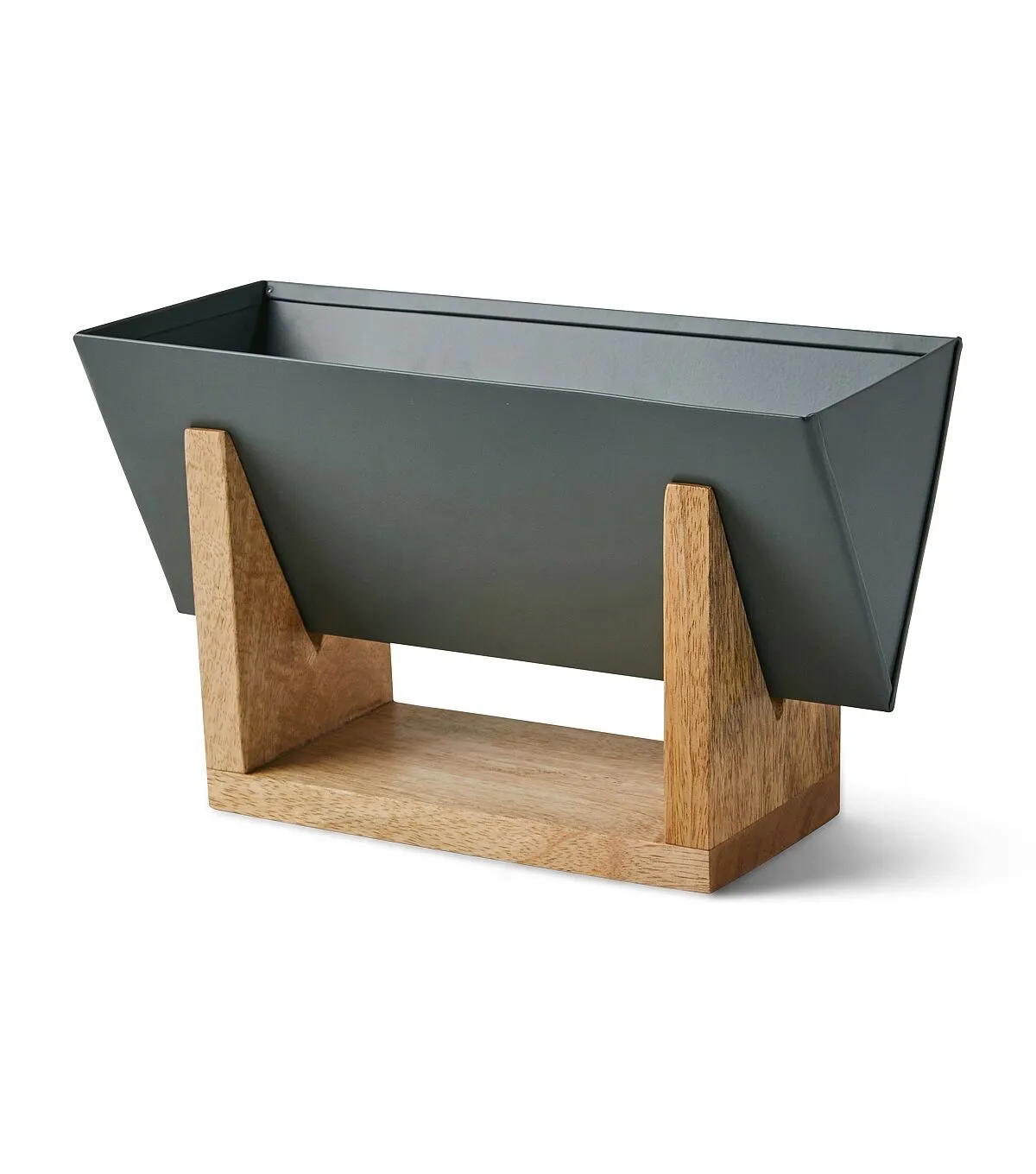10" Spring Iron Prism Planter With Wood Stand by Place & Time