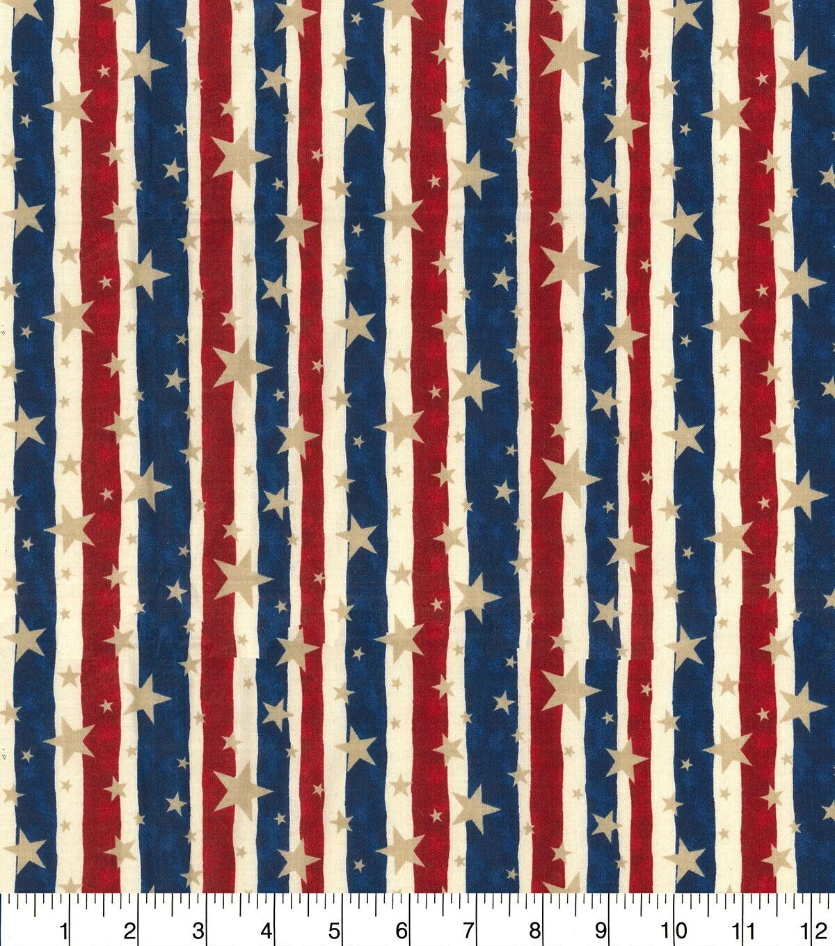 Fabric Traditions Multi Stripes And Stars Patriotic Cotton Fabric