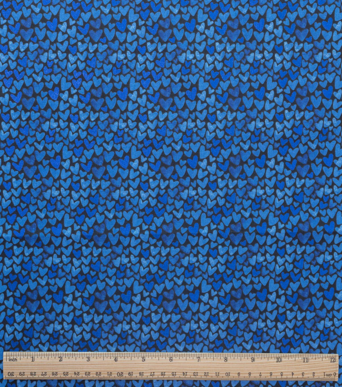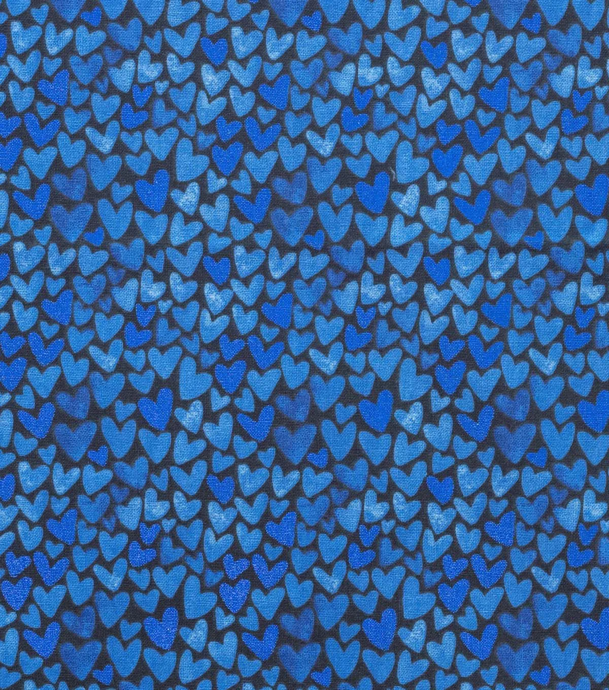 Packed Hearts Blue Quilt Foil Cotton Fabric by Keepsake Calico