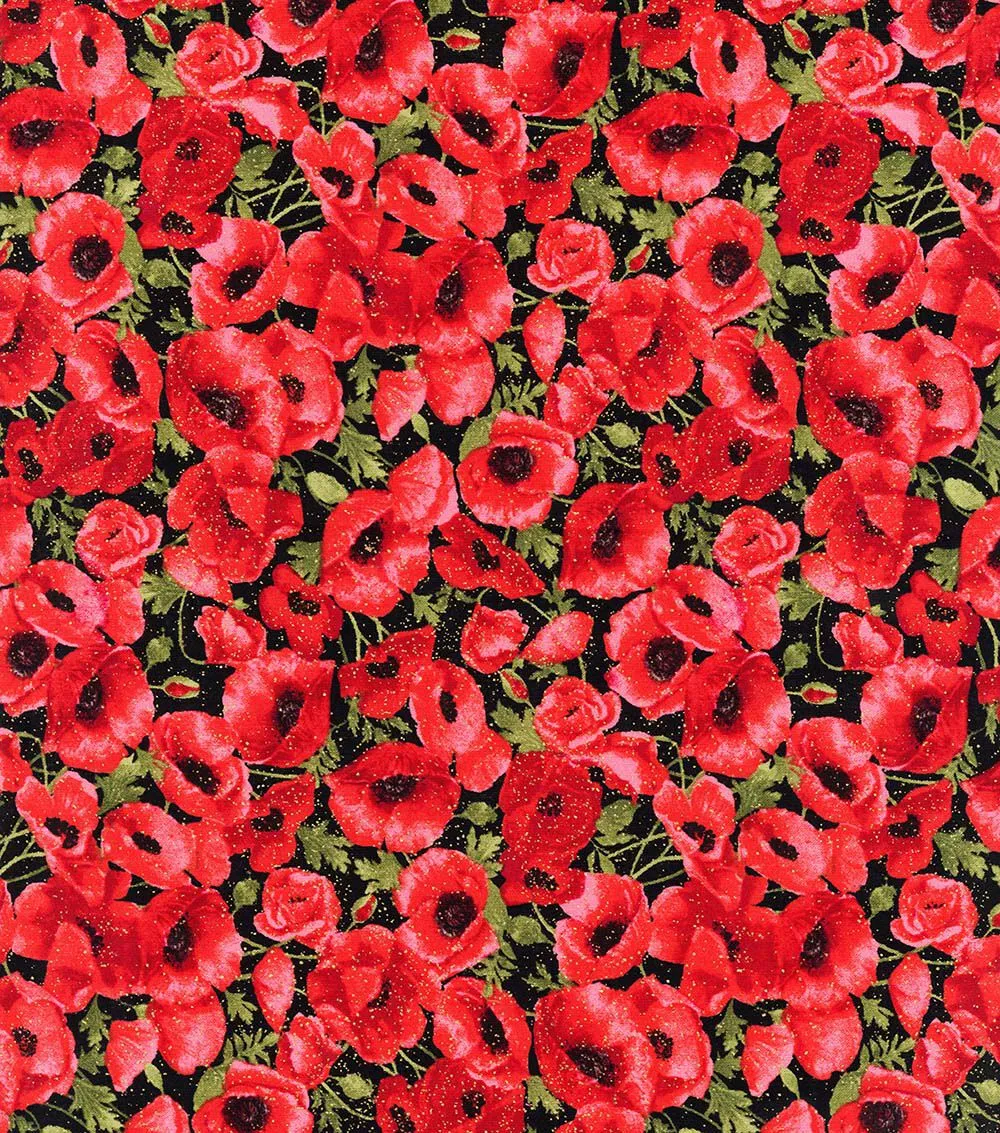 Hi Fashion Red Poppy Premium Metallic Cotton Fabric