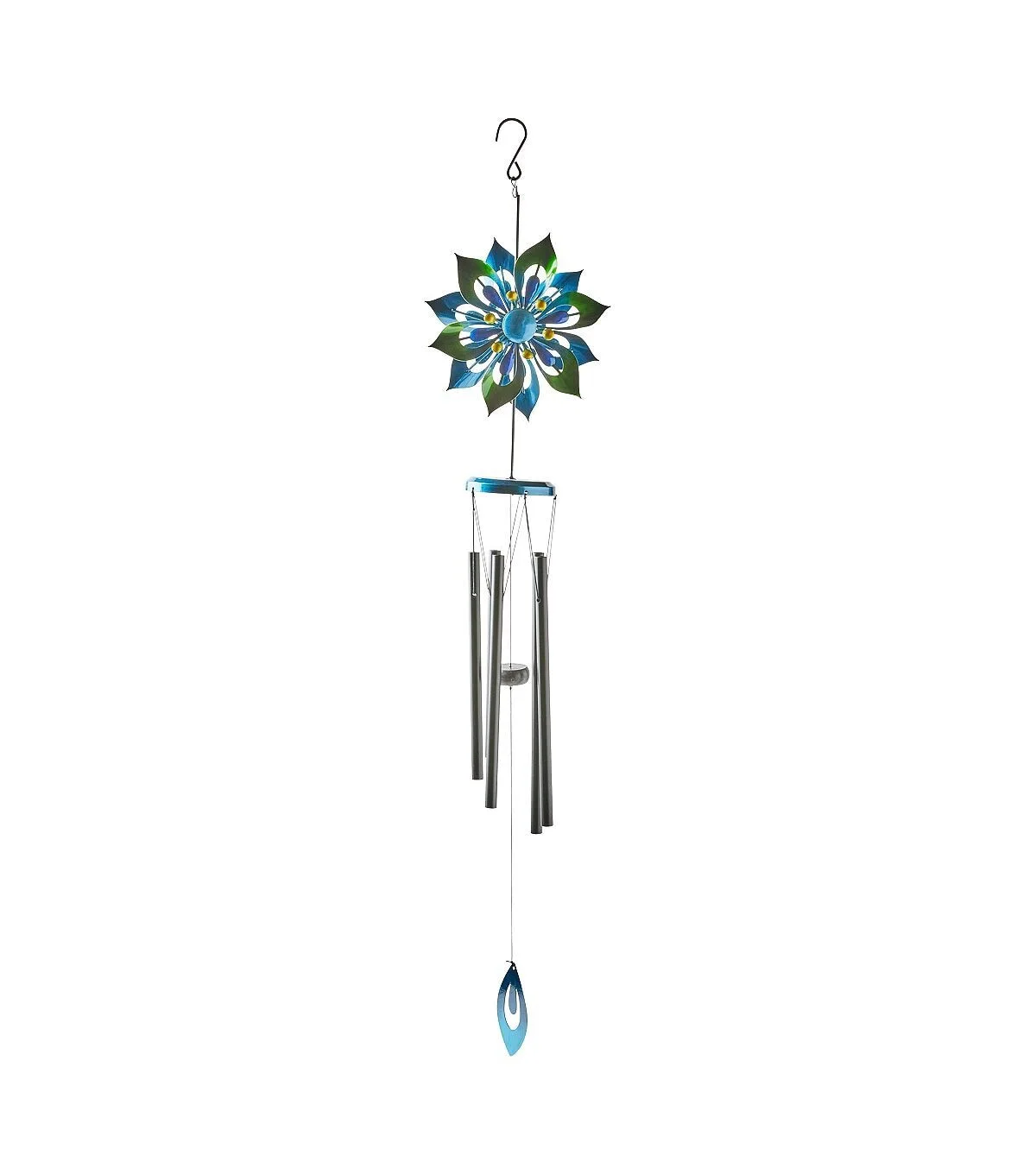 39" Spring Blue Iron Spinning Flower Windchime by Place & Time