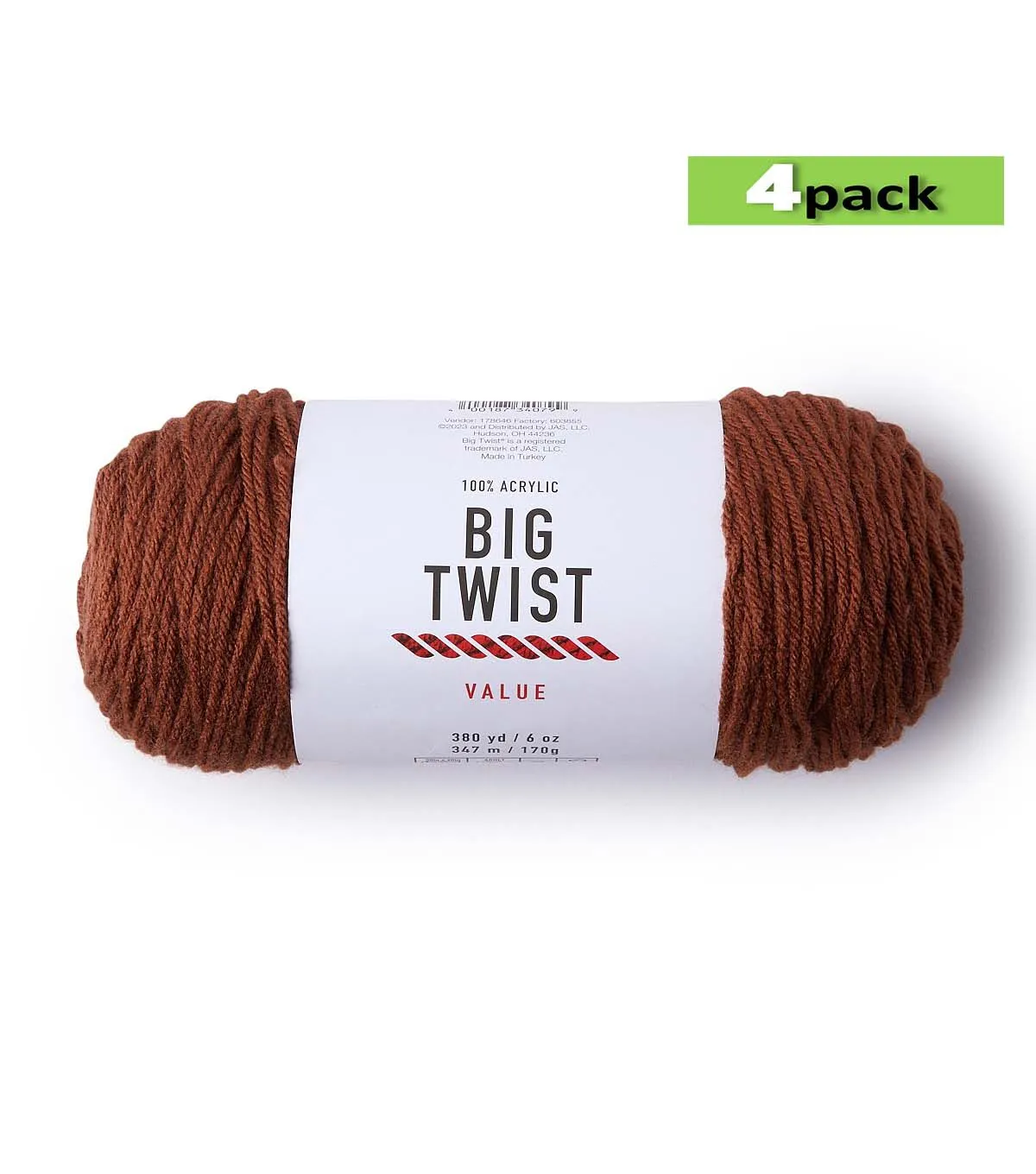 4pk Solid Toffee Medium Weight Acrylic 380yd Value Yarn by Big Twist
