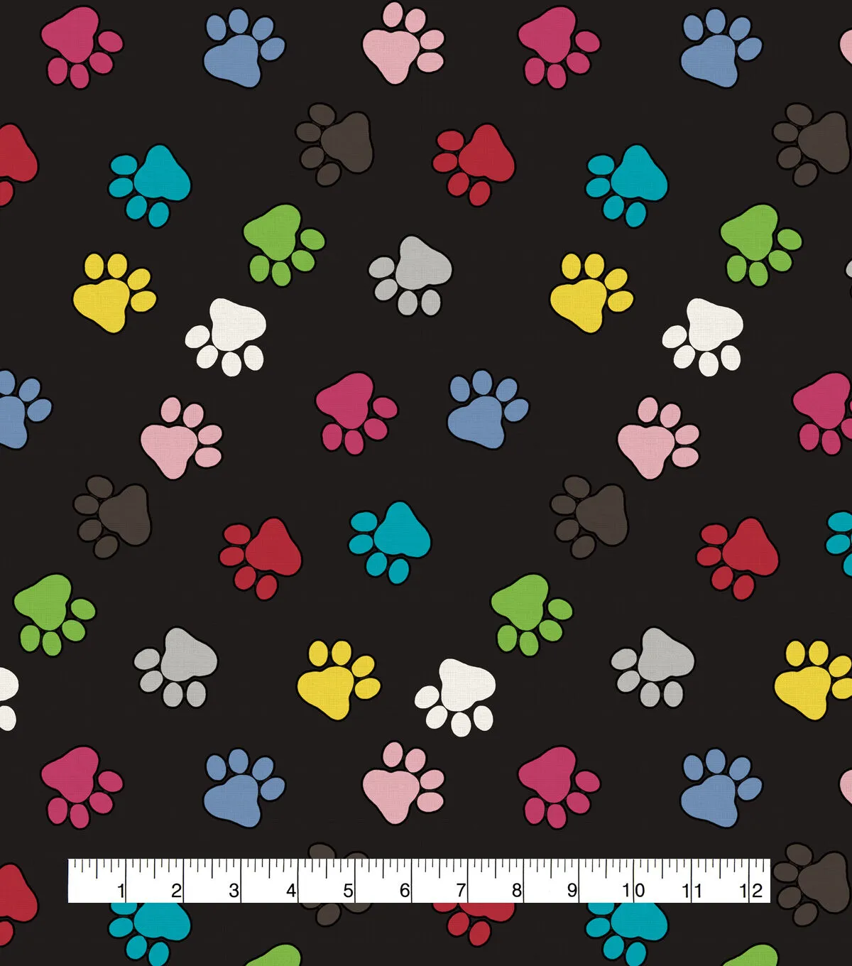 Novelty Cotton Fabric Multi Colors Paws on Black