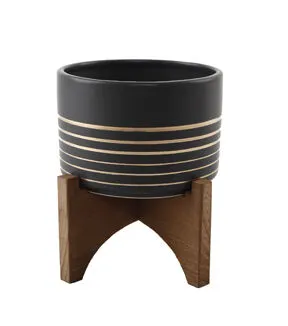 Flora Bunda 5" Ceramic Planter on Wood Stand