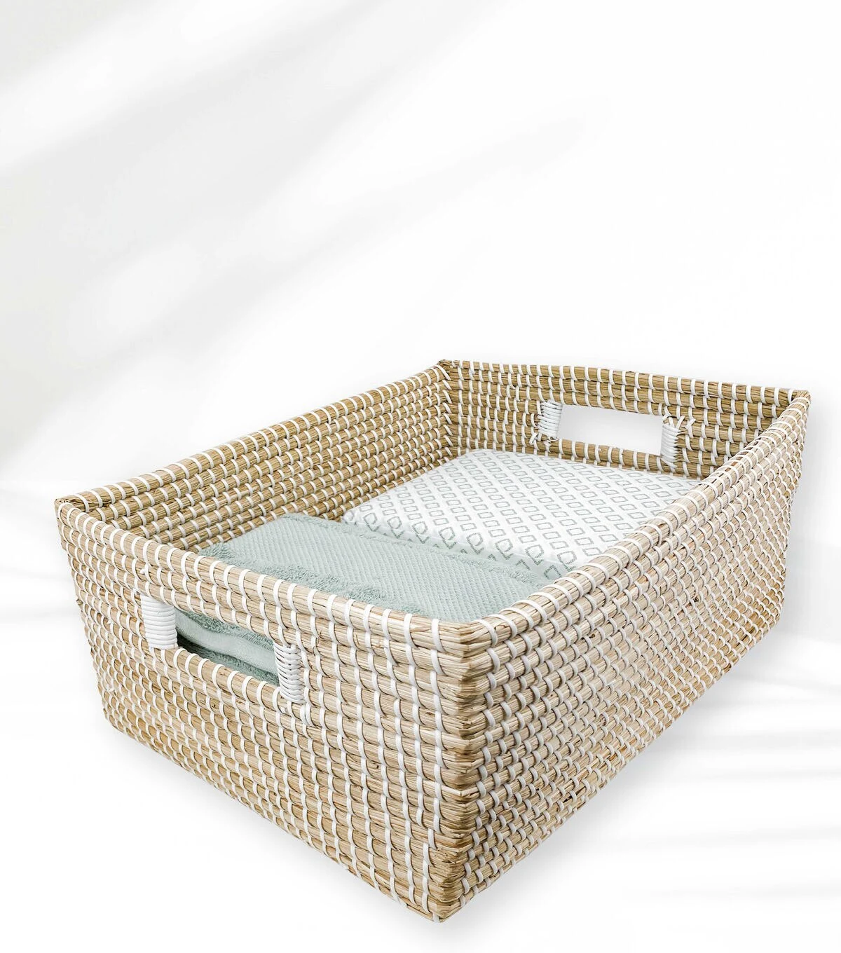18" Natural & White Stitch Woven Basket by Place & Time