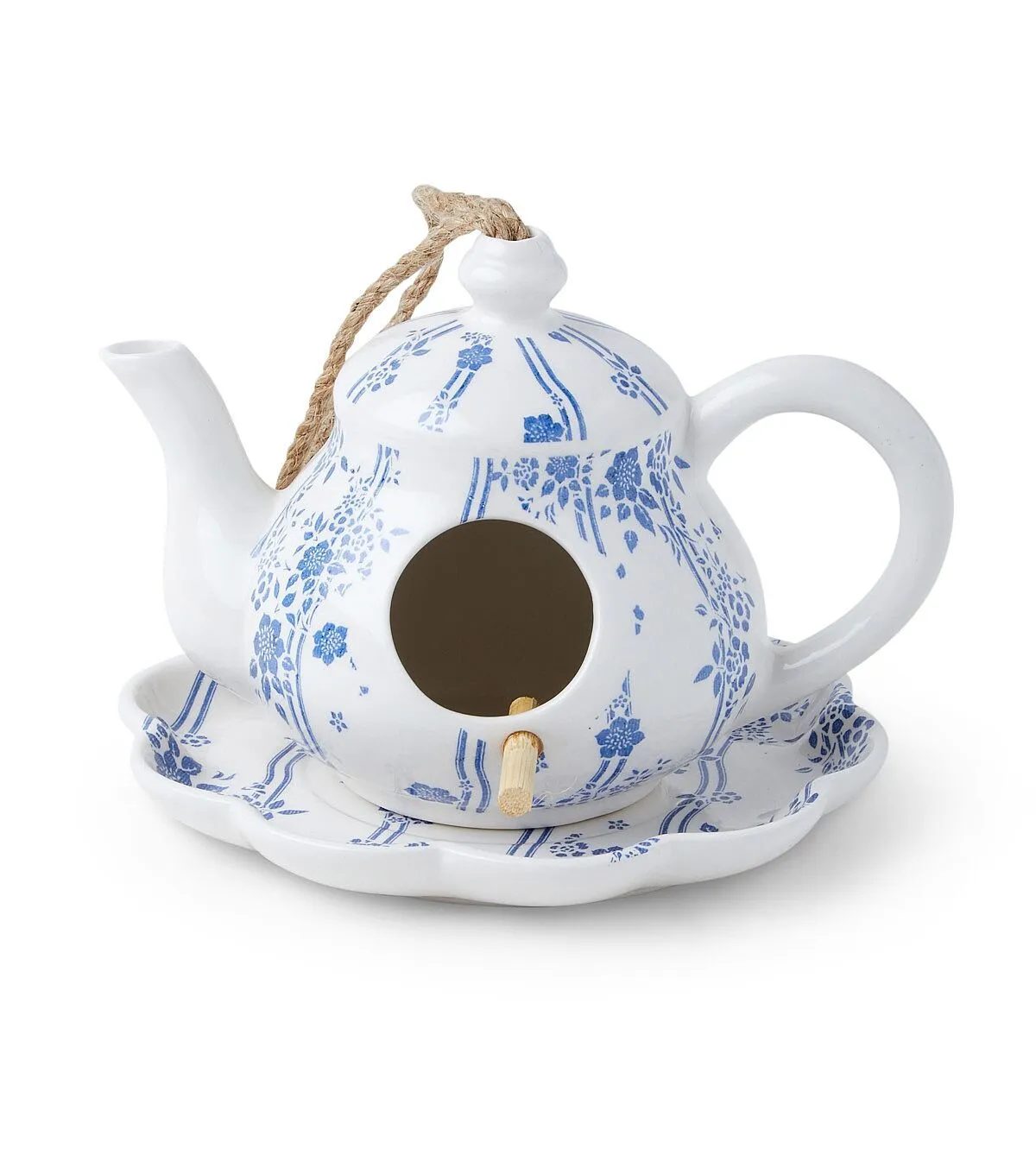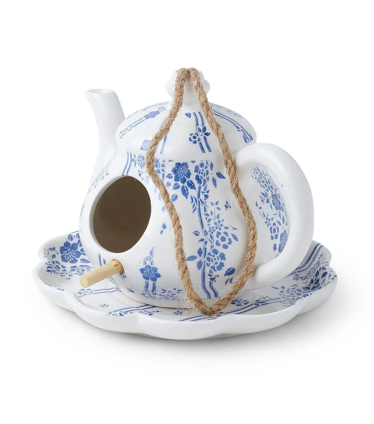 11" Spring Blue & White Ceramic Teapot Birdhouse by Place & Time