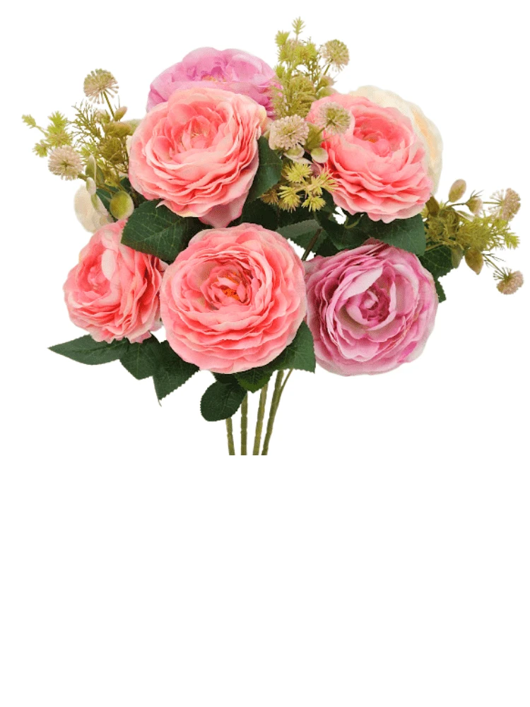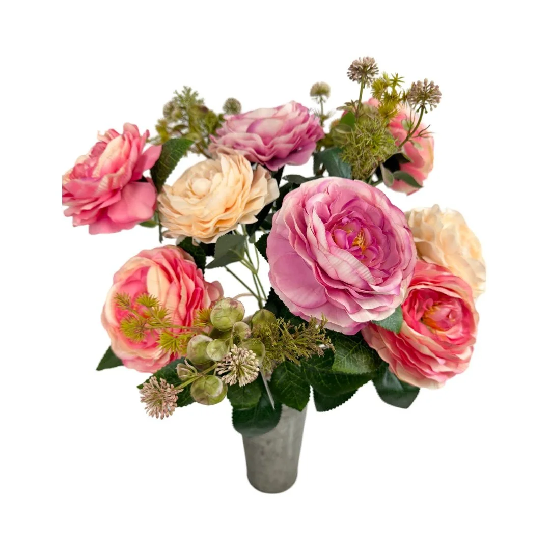 21" Ranunculus Bush: Pink/Lilac/Peach