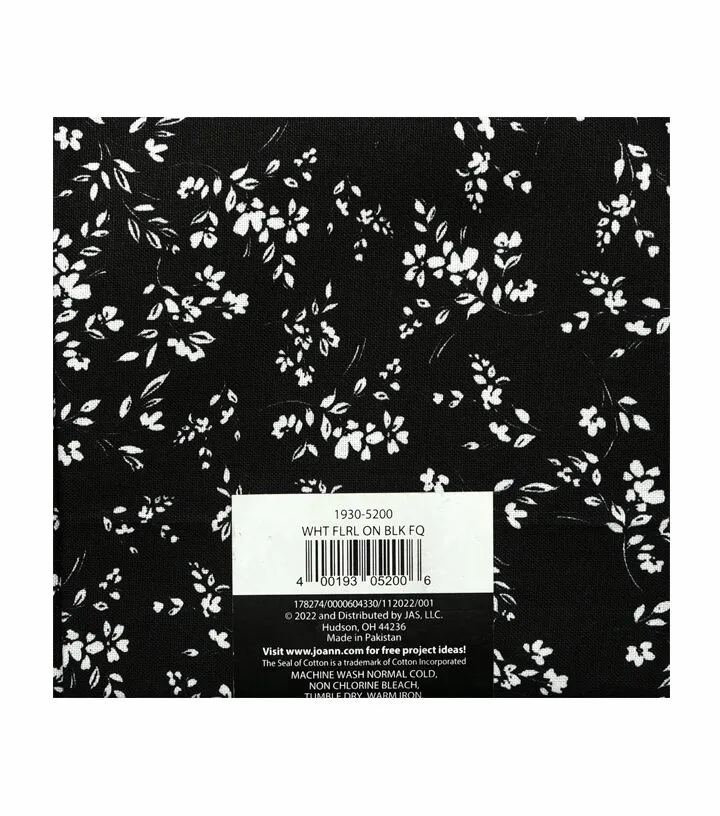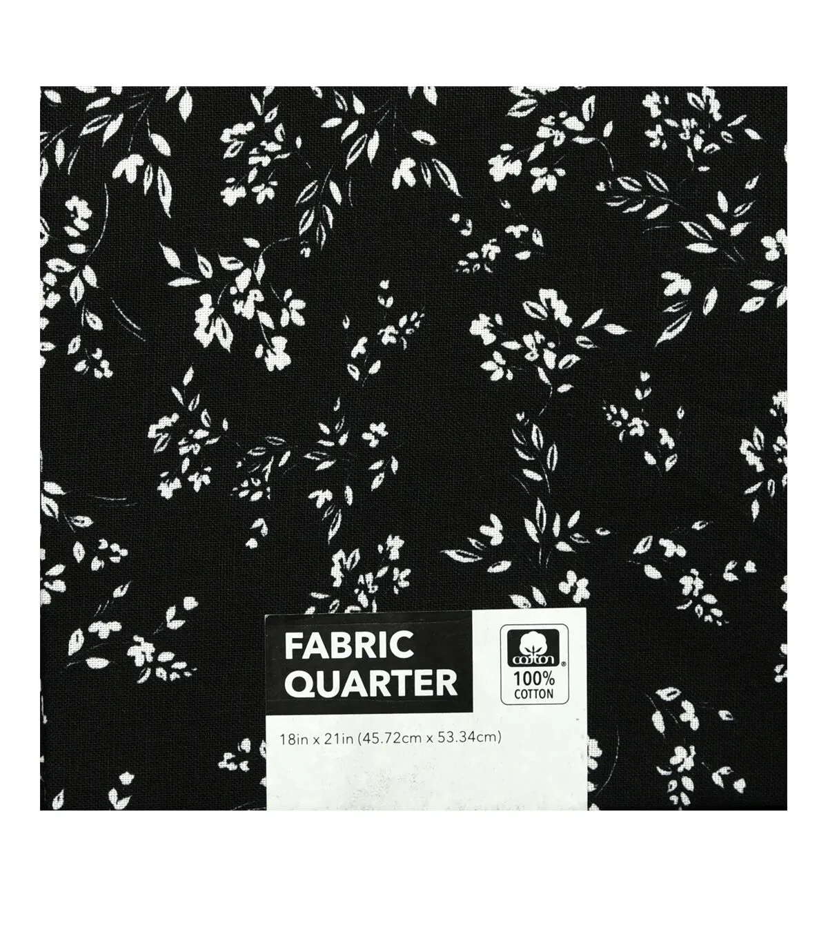 18" x 21" Floral on Black Cotton Fabric Quarter 1pc by Keepsake Calico