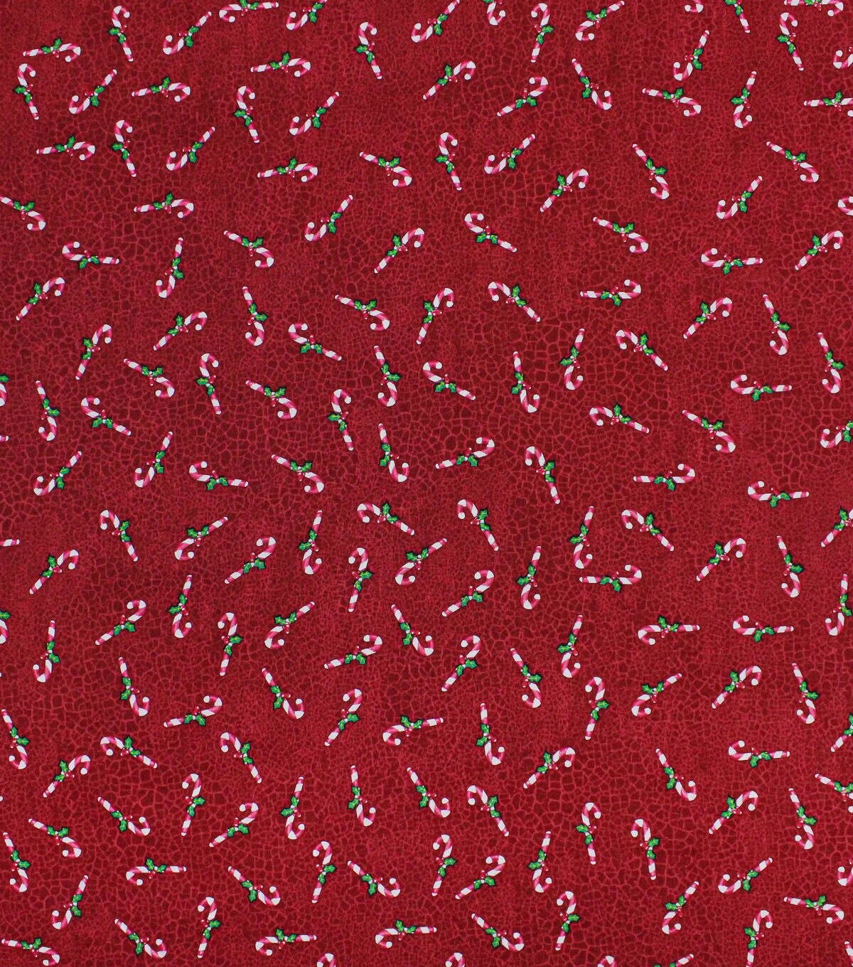 Candy Canes on Red Crackle Christmas Cotton Fabric