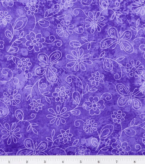 Fabric Traditions Butterflies on Purple Cotton Fabric by Keepsake Calico
