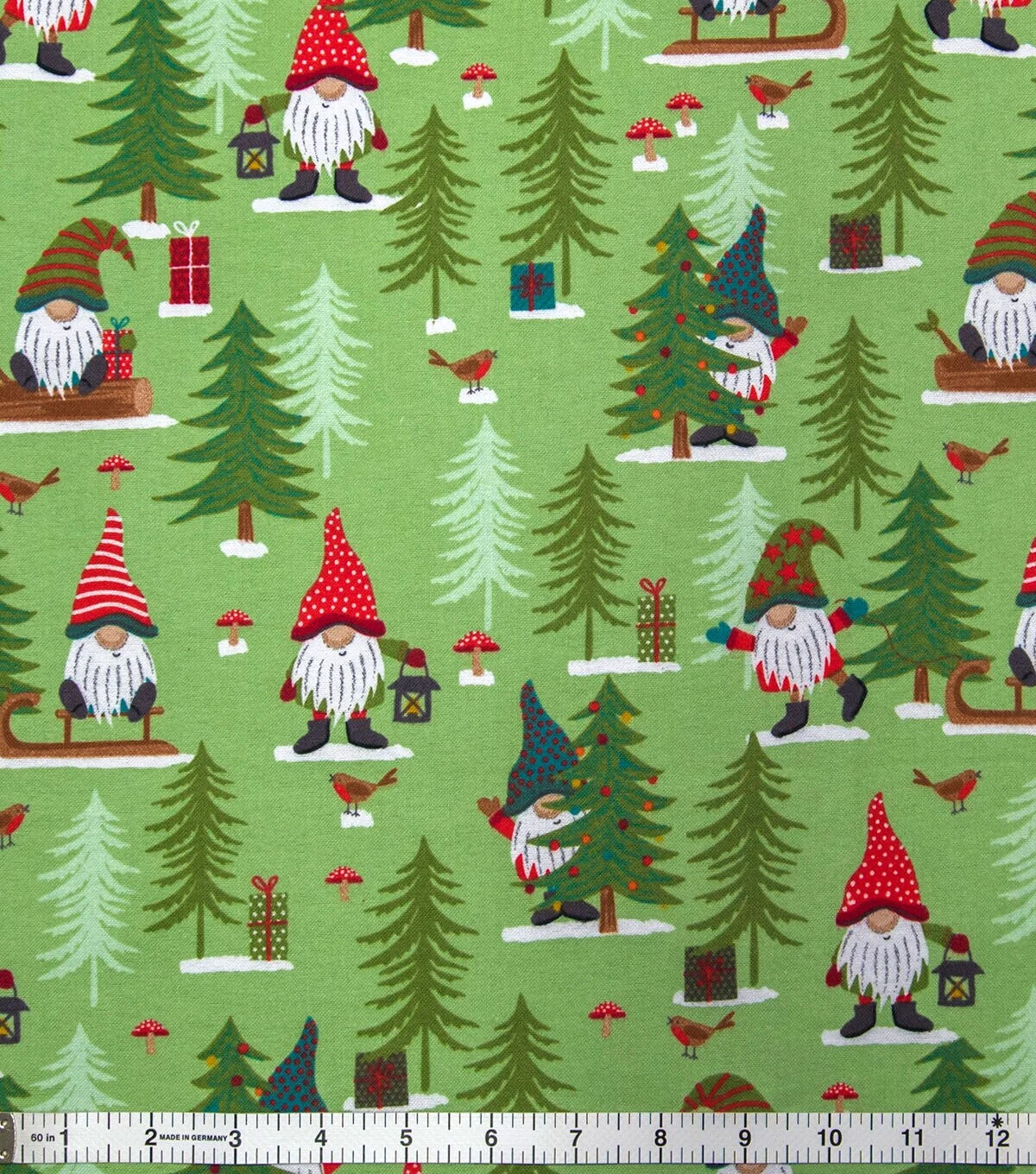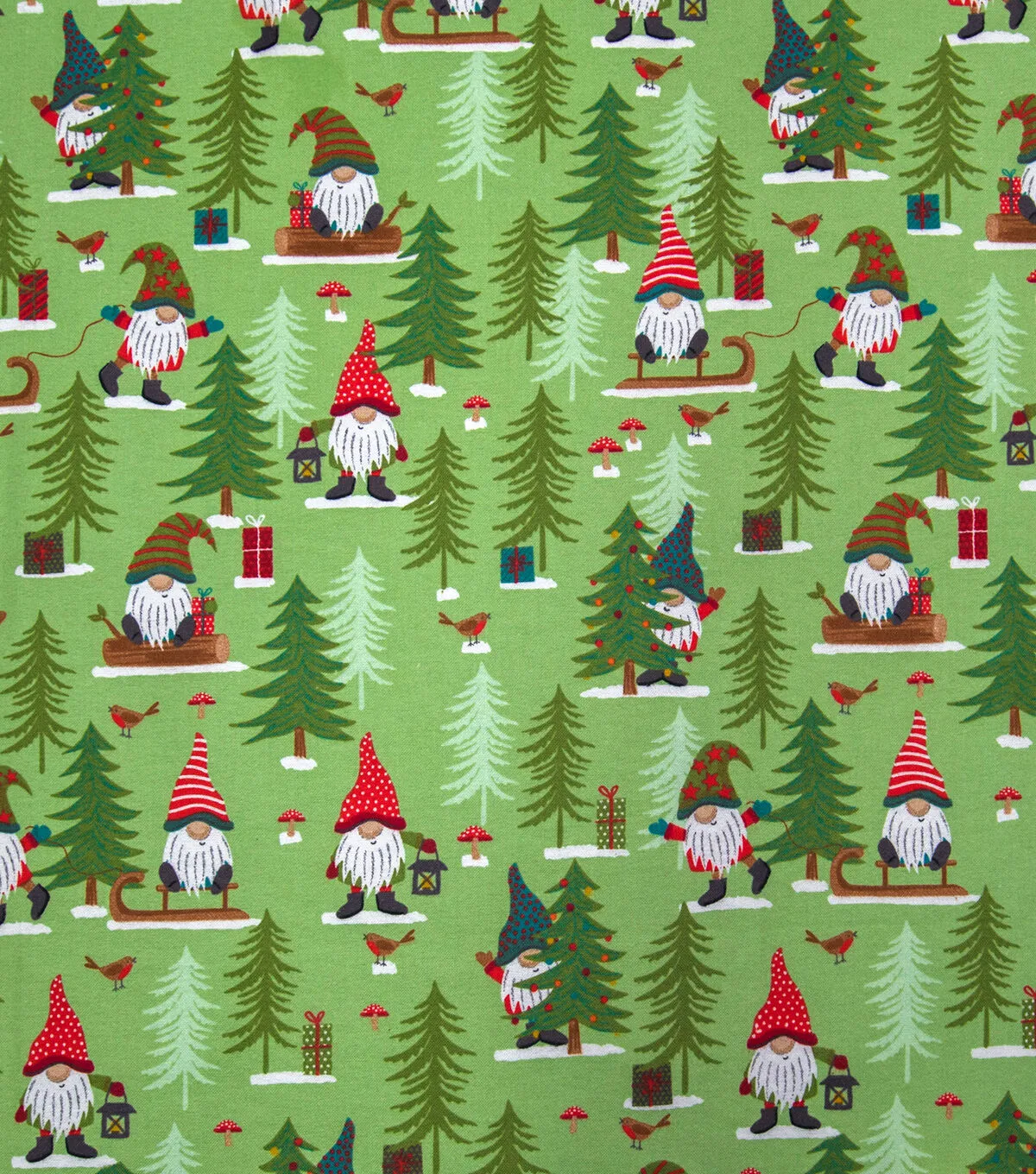 Winter Gnomes & Trees on Green Super Snuggle Christmas Flannel Fabric