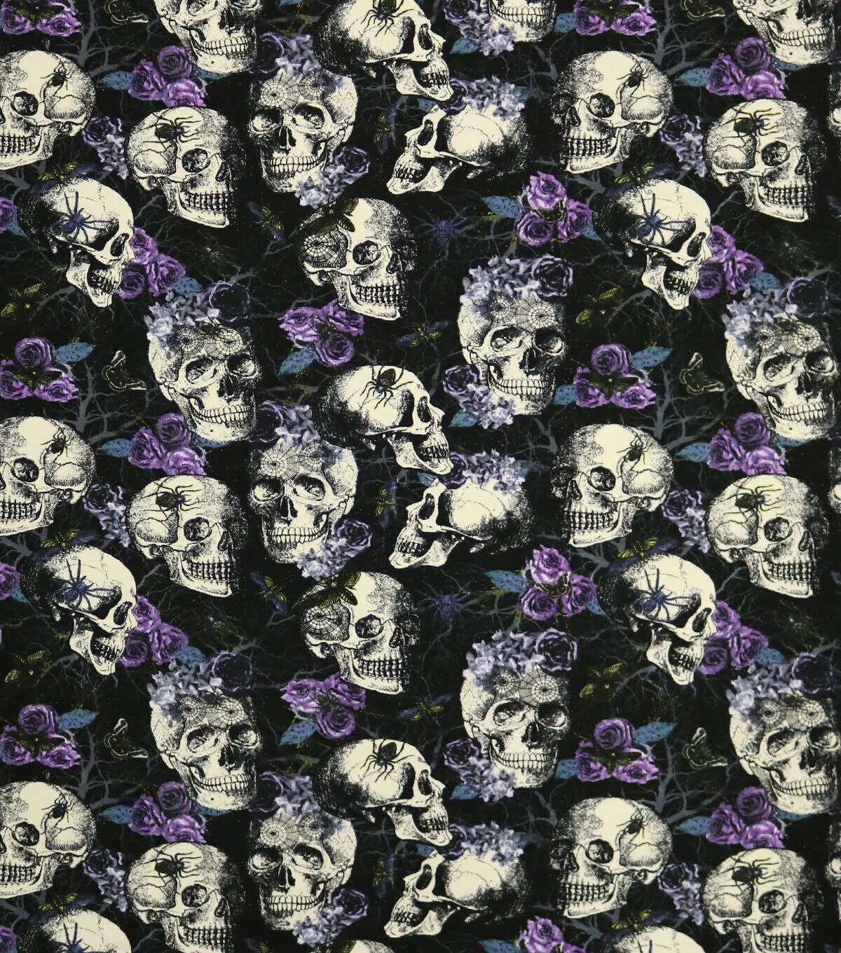 Floral Skulls Halloween Super Snuggle Flannel Fabric