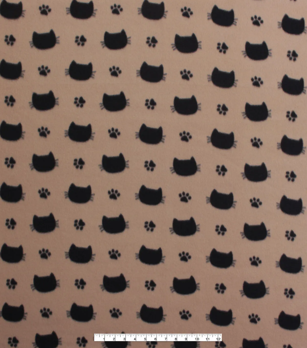Cat Face Silhouettes on Brown Blizzard Fleece Fabric