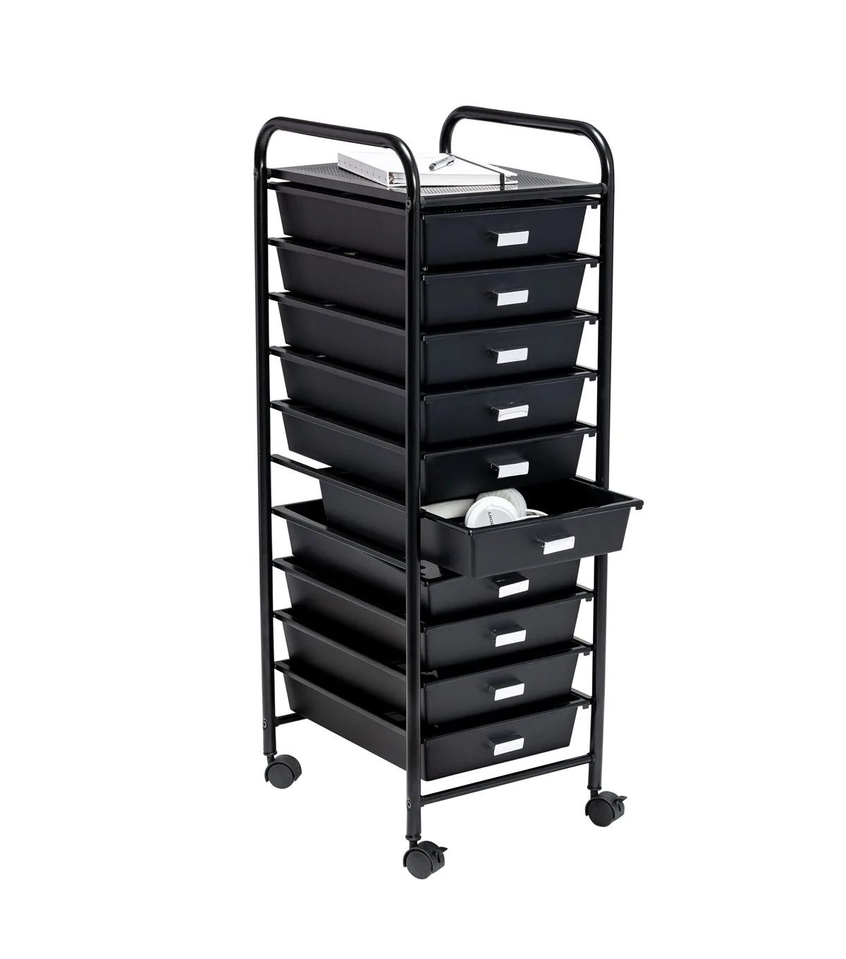 Honey Can Do 15" x 35" Black 10 Drawer Rolling Storage Cart