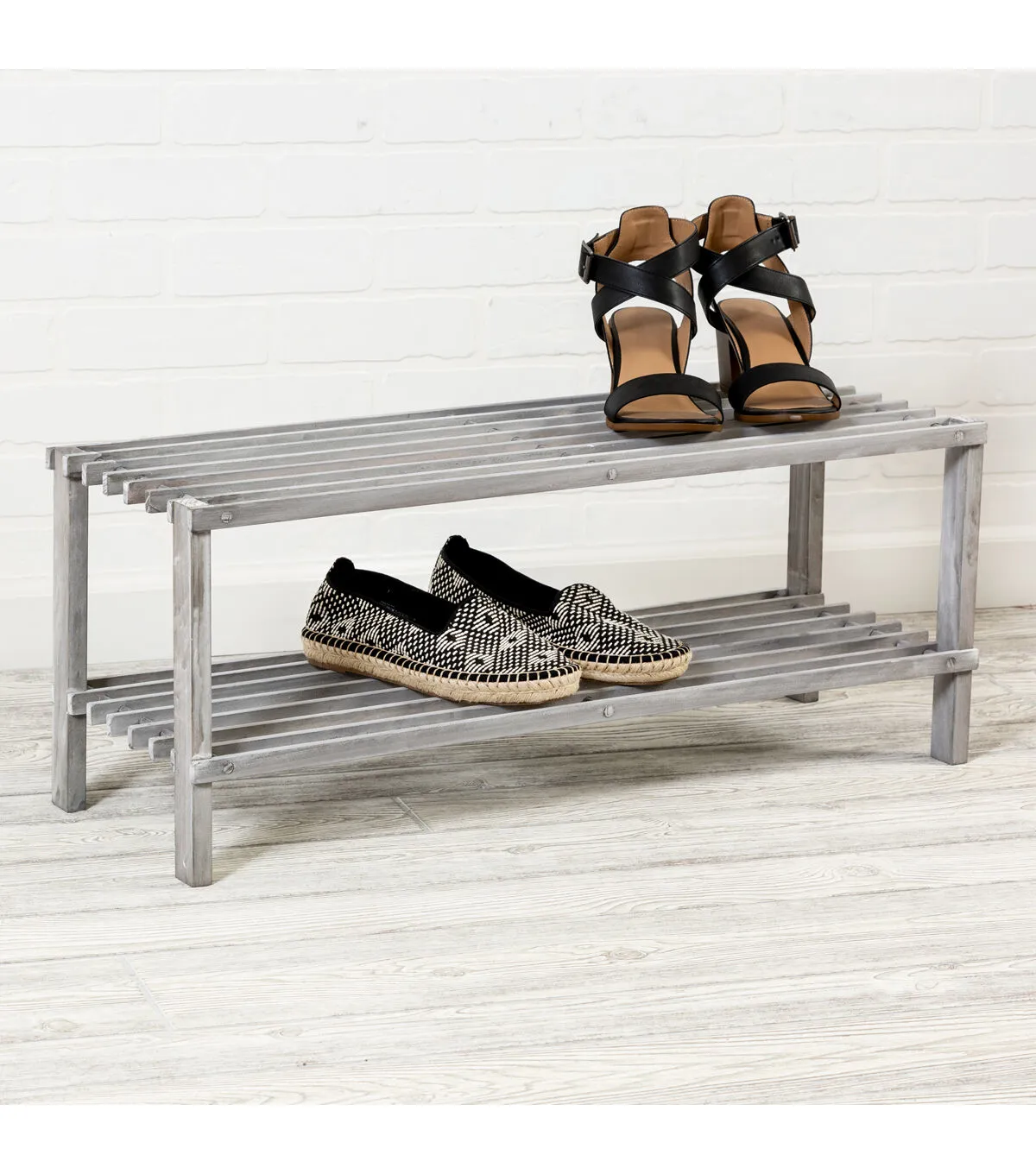 Honey Can Do 10.5" x 12" Gray 2 Tier Wood Shoe Rack