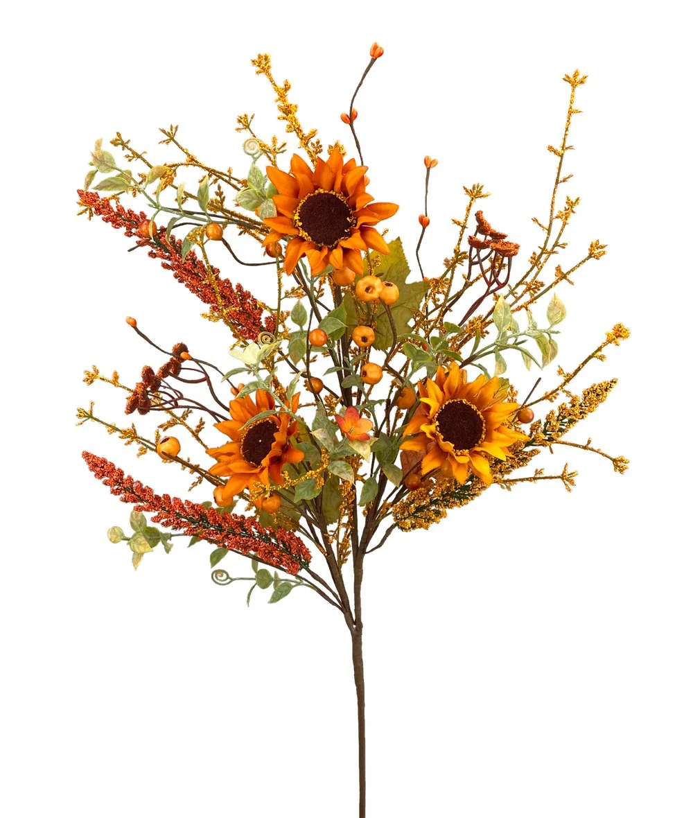 28" Sunflower Berry Spray: Orange