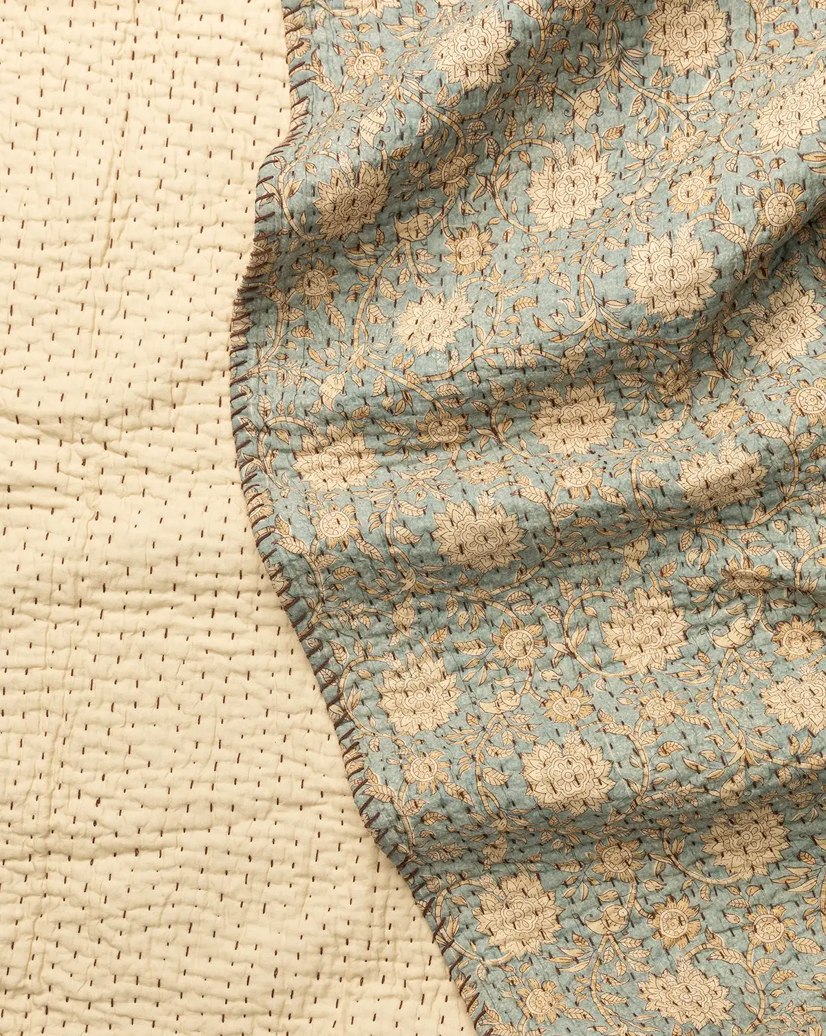 With a bold floral pattern, the Gabriella Block Print Quilt is a cotton quilt that layers both character and texture into your bedding textiles. Made from 100% cotton that is block printed and filled with a double layer of flannel, the cotton quilt adds colorful detail to your bedroom decor.