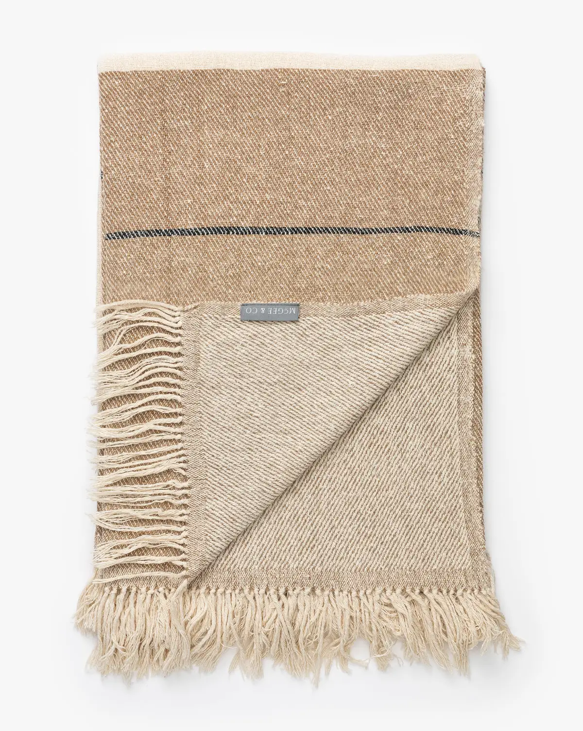 Made from 100% silk, the Murphy Silk Throw is both cozy and elegant. A neutral palette of tan and cream create a simple yet intriguing design that adds visual balance to the hand-loomed throw. Whether draped over the arm of a sofa or along a chaise, this silk throw elevates a space when layered or styled alone.