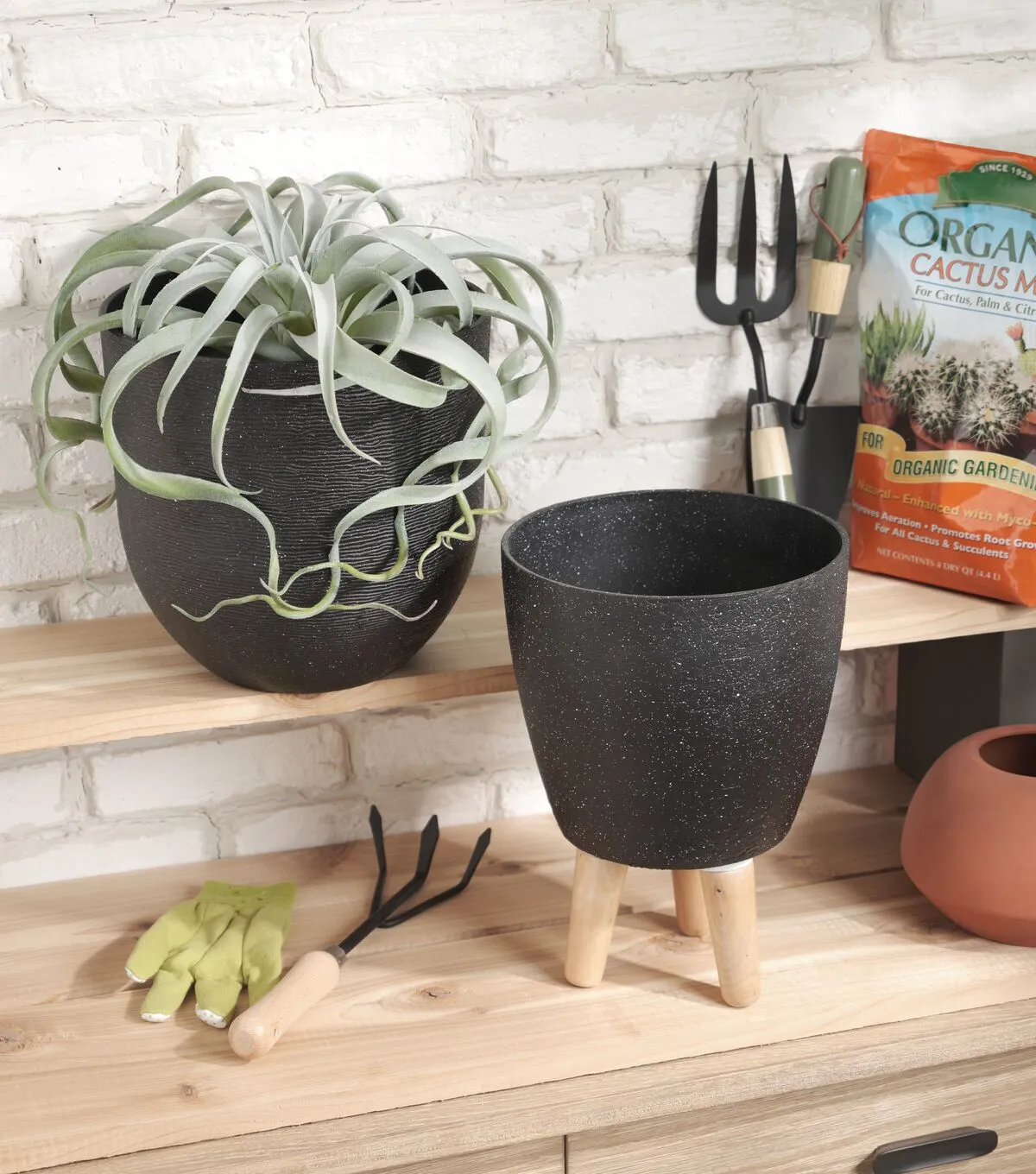 The Spring Black Planter With Wood Legs by Place & Time will make a stylish addition to your indoor garden. This black planter is designed with three wooden legs. It is perfect for growing cacti, succulents or any other seasonal plants. You can also gift it to a loved one who has moved into their new home.