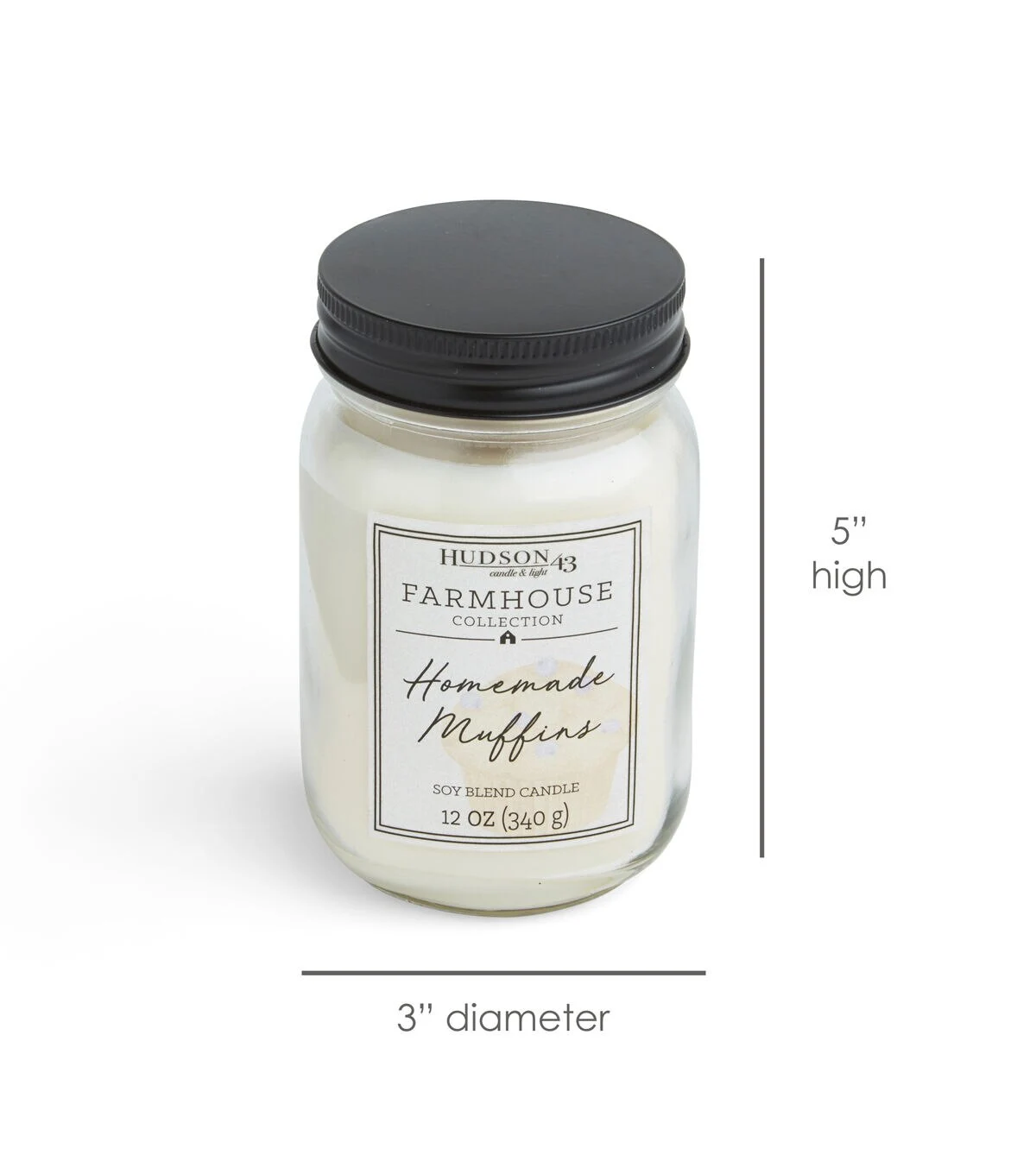 The Hudson 43 Farmhouse Collection Homemade Muffins Mason Jar Candle offers a modern yet rustic fragrance in a beautiful package that goes with any decor. This 12-ounce clear mason jar comes with a white wax candle and a matte black lid that screws on. It includes the notes of almond, honey, oats and butter.