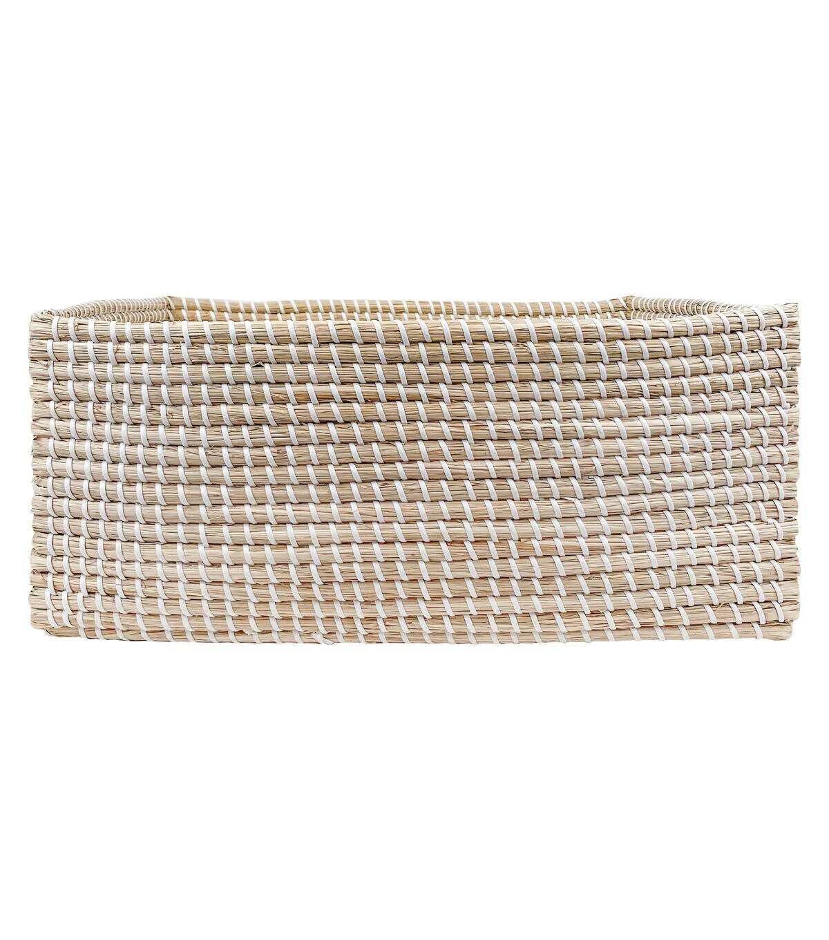 Give your home decor a rustic touch with the Natural & White Stitch Woven Basket by Place & Time. This woven basket flaunts a natural shade with white stitches. It is designed with cutout handles on two sides for ease of carrying. You can use it to store books and LED candles on the coffee table or towels in the kitchen.