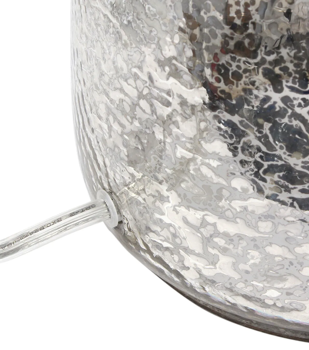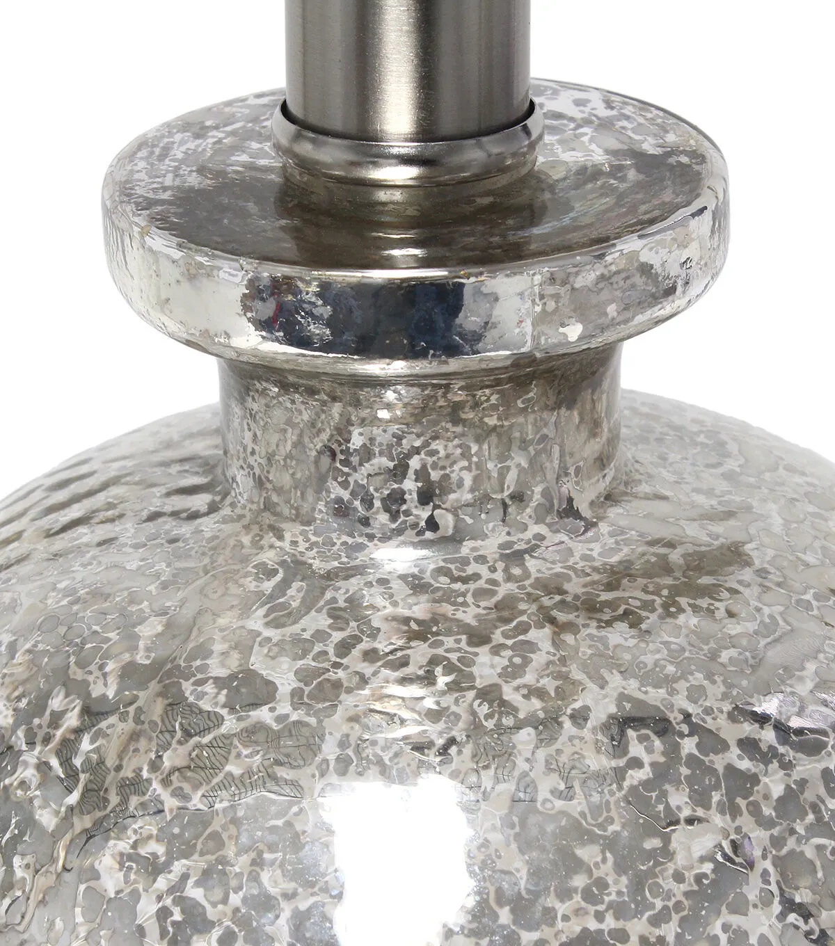 With a textured glass base and white fabric drum shade, this lamp is sure to update any room in your home with a little charm. This lovely lamp is crafted with an open bottom glass base in mercury. Perfect for adding the little refresh to your living room, bedroom, foyer or office that you've been looking for!