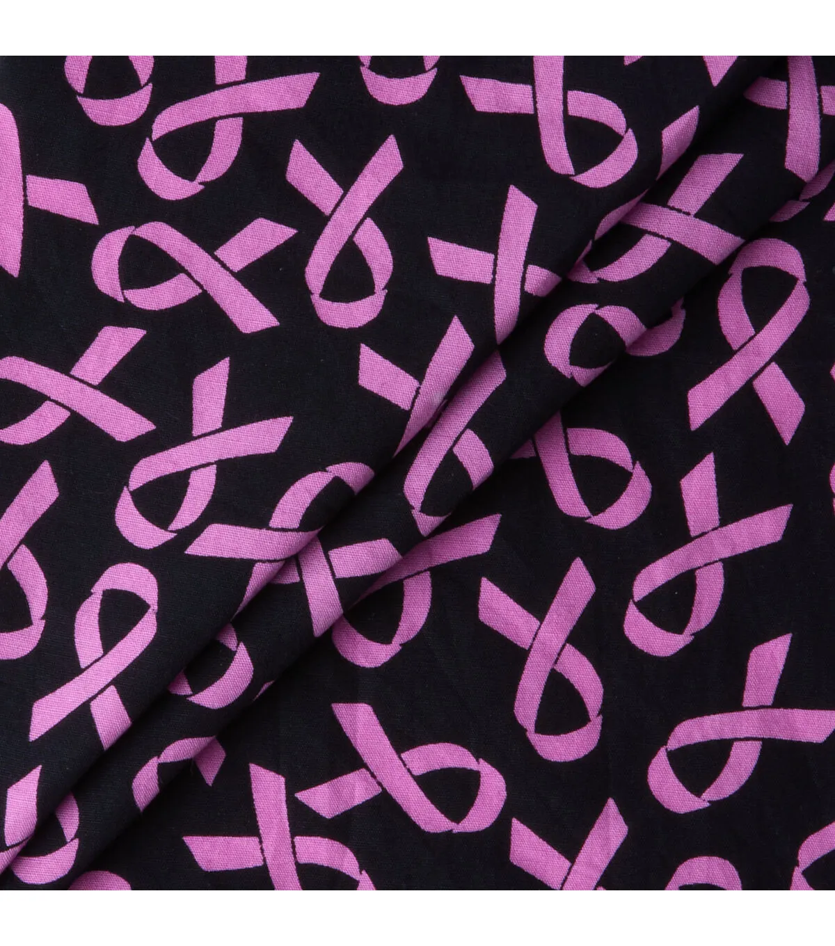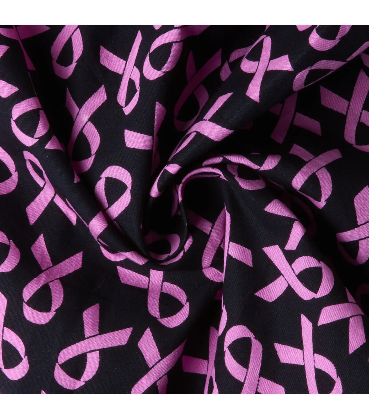 Breast Cancer Ribbons On Black Batik Cotton Fabric