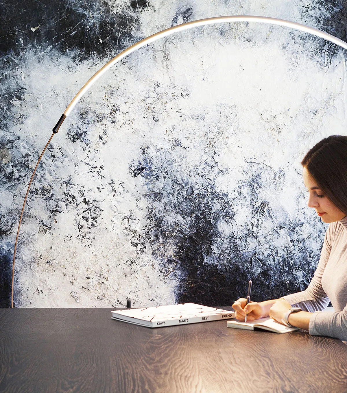 Embrace minimalist, sleek mood lighting for your living room with Brightech's inspiring LED Sparq Arc! Standing roughly 67" tall, featuring a built-in dimmer switch on the cord that enables three-way dimming between bright, medium, and dim. Generating between 680-Lumen & 850-Lumens, quickly place the light over your desk so you can read your work more clearly, without adding clutter. The modern minimalist design makes for a perfect addition to your bedroom, living room, or office!