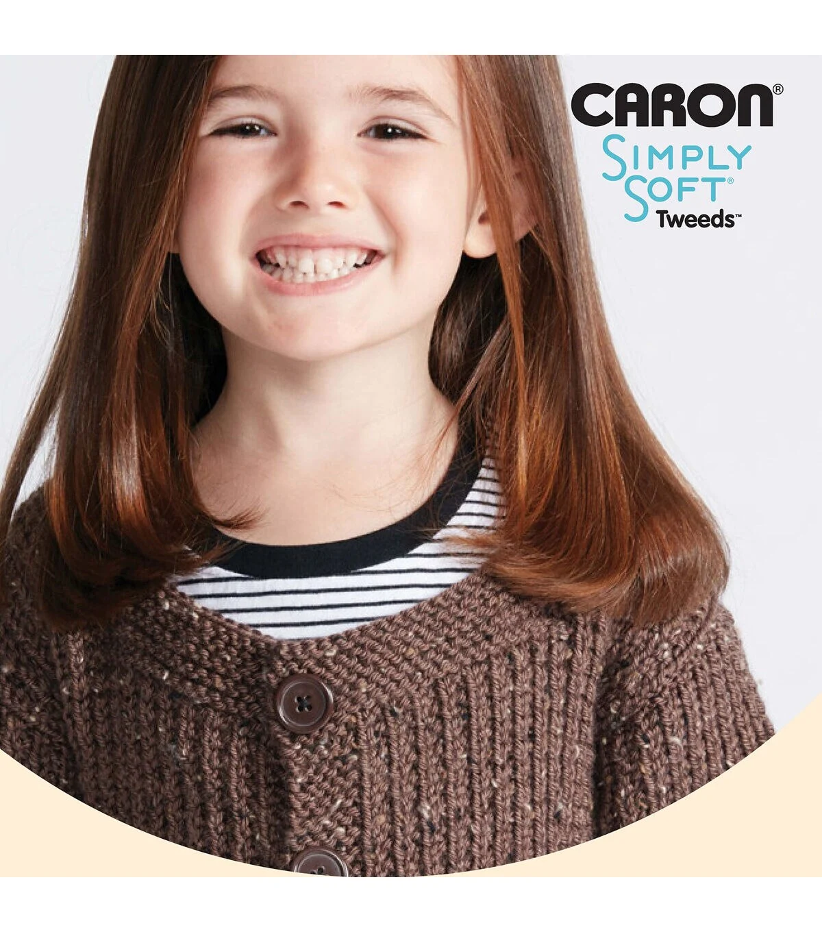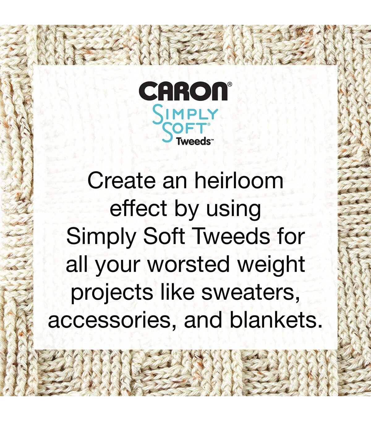 Caron Simply Soft Tweeds takes classic neutral colors of favourite Simply Soft, and adds a lovely tweed effect. This yarn is perfect for all your knit and crochet projects with the same beautiful drape and sheen that Simply Soft is known for. Create an heirloom effect by using Simply Soft Tweeds for all your worsted weight projects like sweaters, accessories, and blankets. Easy care – machine wash and dryable.