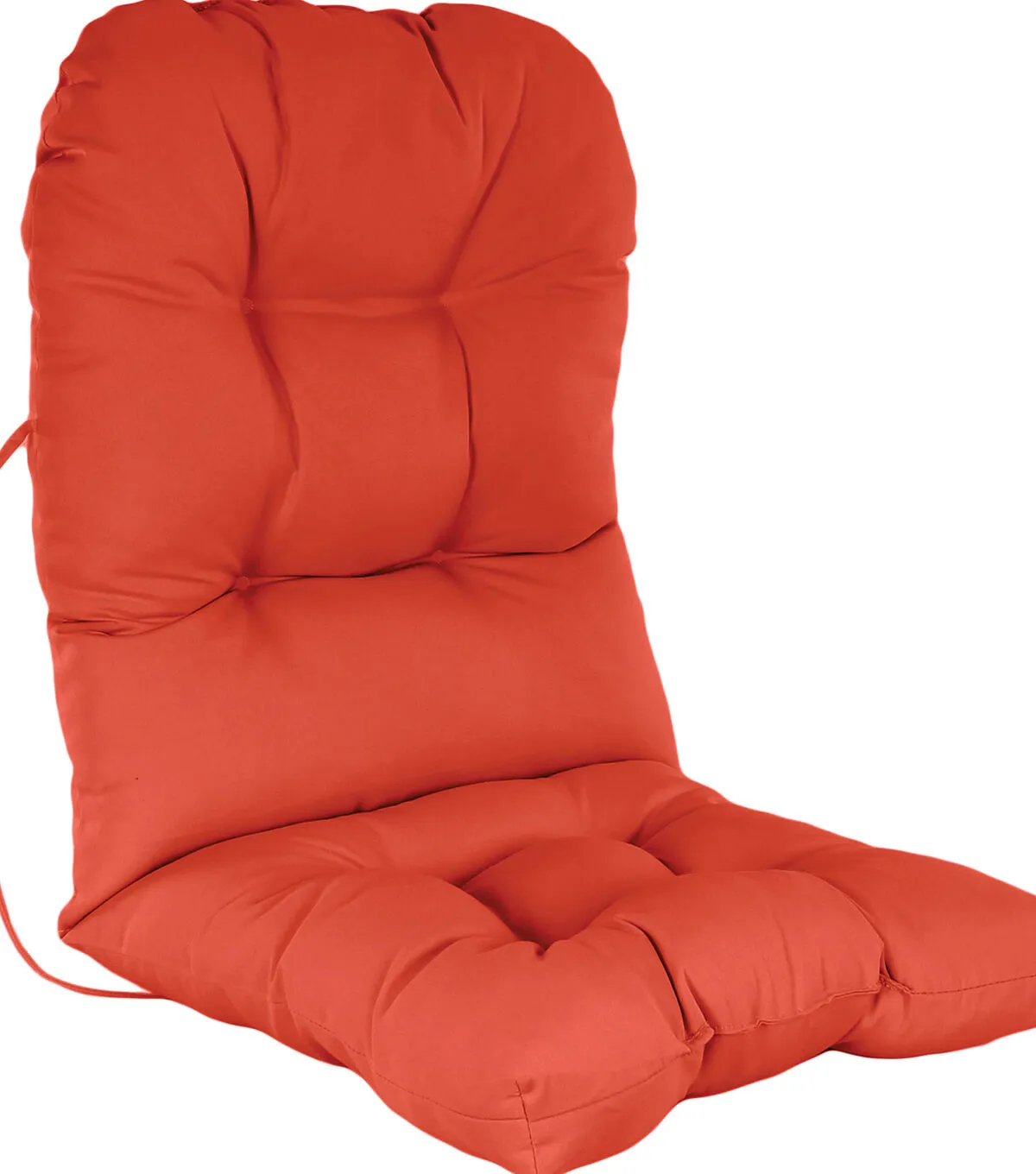 This Adirondack cushion is a great addition to any standard patio chair, firepit Adirondack, really any chair needing some comfort or color. Our cushion is made with 100% polyester for great color and durability, it will work great for both indoor or outdoor use. Seat cushions are filled with a 100-percent polyester fiber sourced from North Carolina and filled right here in Nebraska. Attached ties keep the cushion securely tied to your favorite Adirondack chair, also works well on a rocking chair. The Adirondack cushion is also circle tacked to eliminate bunching of filling for a perfectly comfortable seat. Lightly spot clean or hand wash with a mild detergent and cool water, allow to air dry. When the cushion is laying flat, it measures 45 inches long x 20 inches wide x 3 inches high. When the cushion is in a chair, the bottom seat cushion measures 18 to 20 inches wide and 16 to 18 inches deep, and the top or back part of the cushion measures up 22 to 24 inches. Does not include a chair, cushion only. To maximize the life of our cushions, we recommend to store them out of the sunlight when not in use.