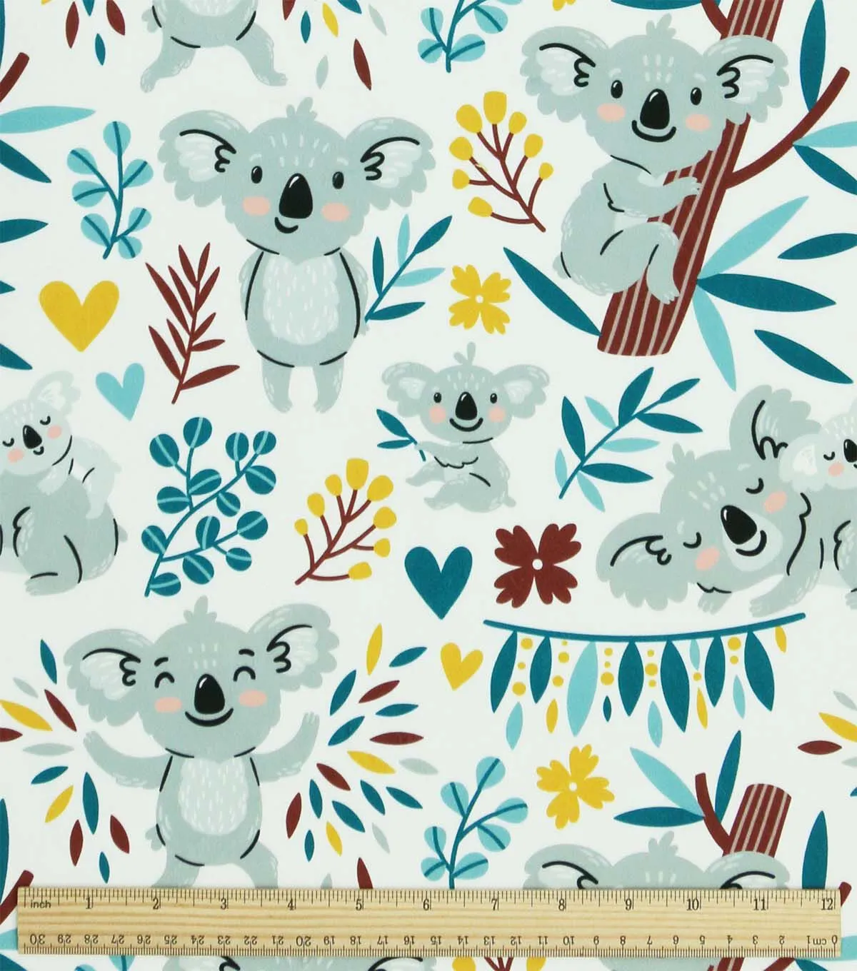Get Cozy with Cute Koalas on White Soft & Minky Fleece Fabric