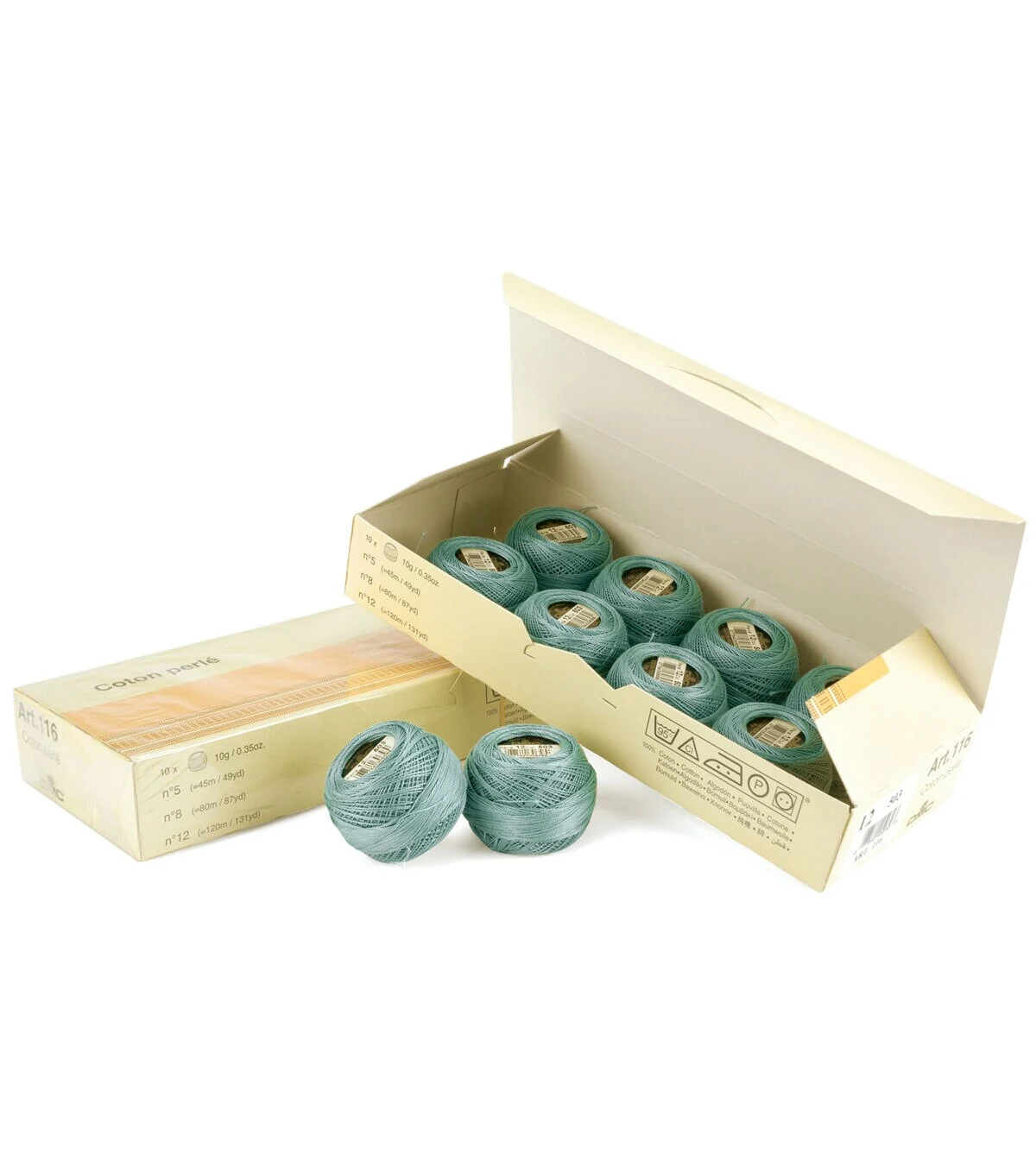 Experiment with various cross stitch, needlepoint, applique, smocking, crochet and embroidery work designs to accentuate your apparel and home decor projects, using the DMC Pearl Cotton Balls Size 12 131Yds. Made of highly mercerized 100% cotton, this non-divisible, colorfast thread features a lovely pearlized sheen and won't fluff or fray. Create raised patterns and lend volume to designs on various fabrics using this pearlized cotton embroidery thread. These pearl cotton balls are available in different colors and sizes for you to choose from.